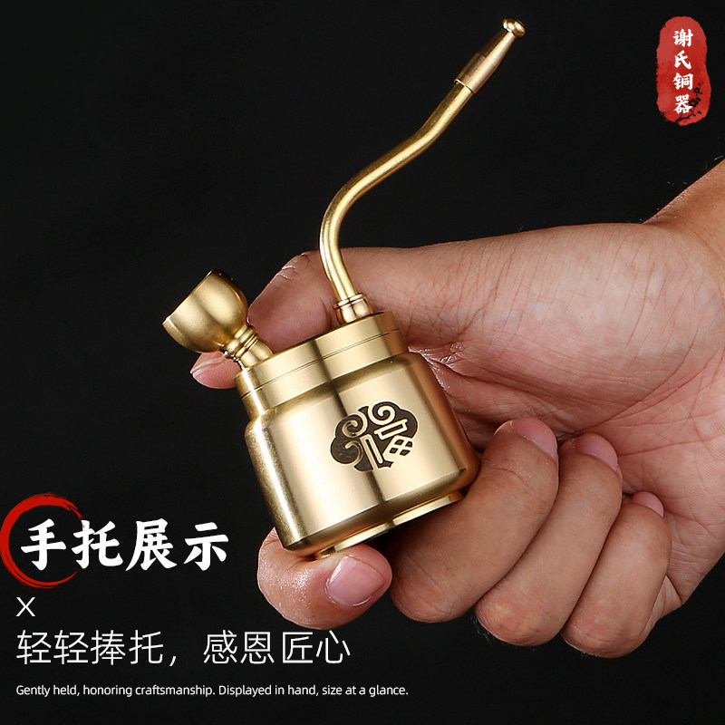 谢氏铜器正品清洗可拆卸过滤烟斗粗中细用摆件装饰黄铜实用
