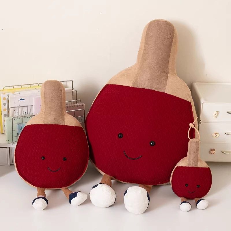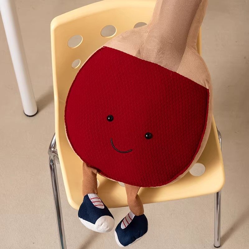 新款趣味运动坐姿乒乓球拍毛绒玩具沙发抱枕创意摆件儿童礼物玩偶
