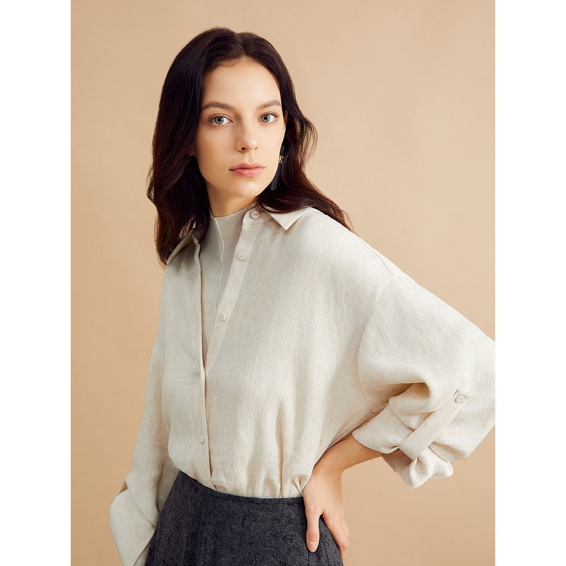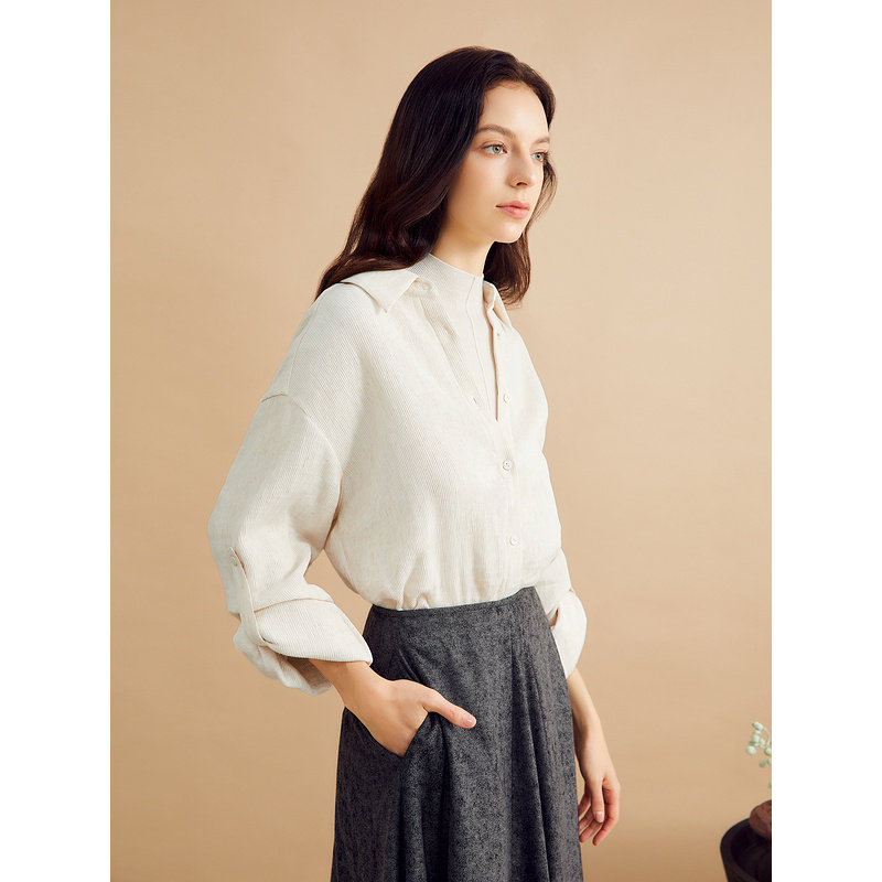 YINER音儿女装秋季法式休闲肌理感亚麻长袖衬衫