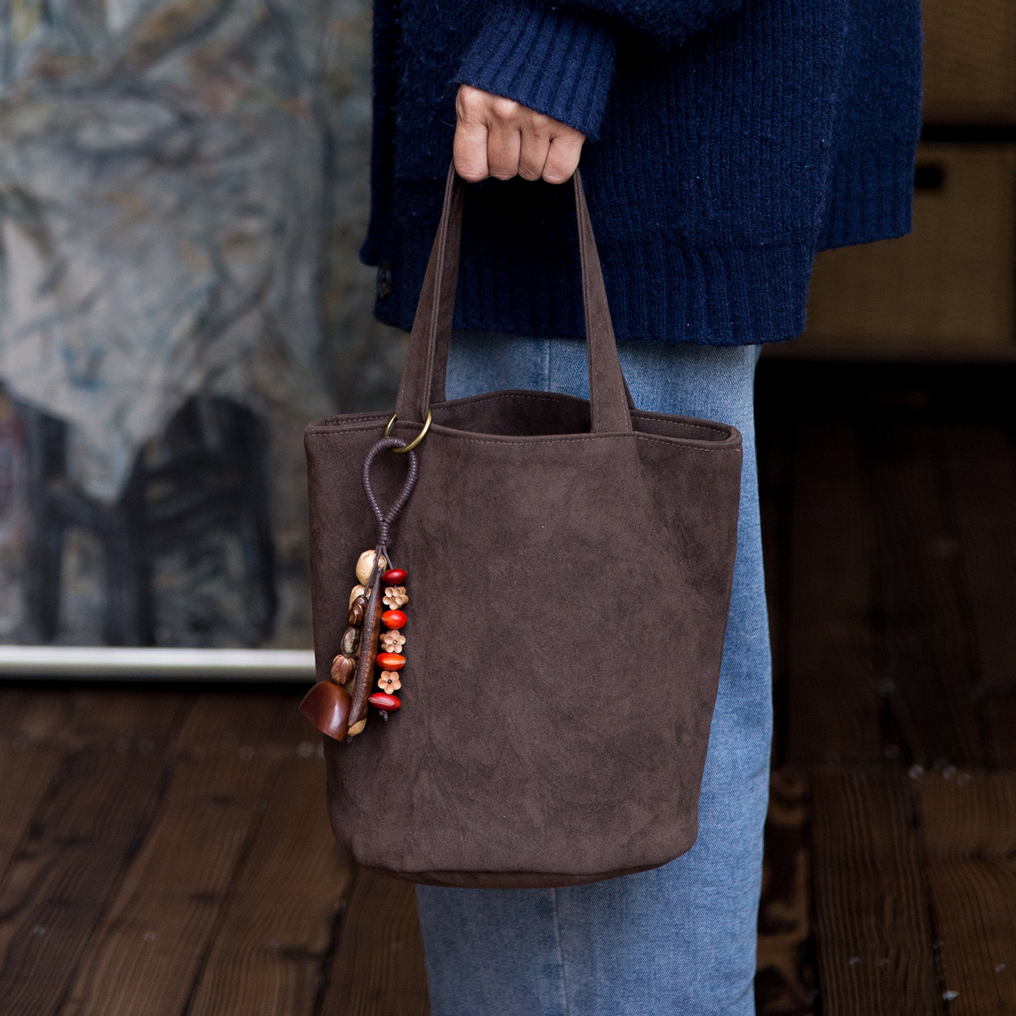 复古文艺咖色水桶包简约手提女士包新中式小拎包逛街轻便手提袋