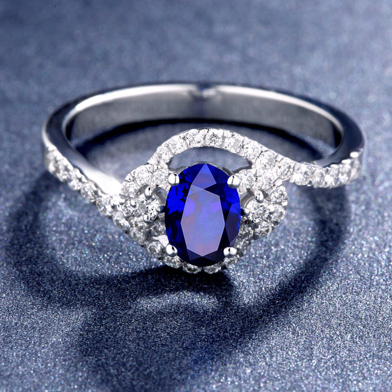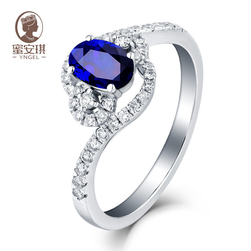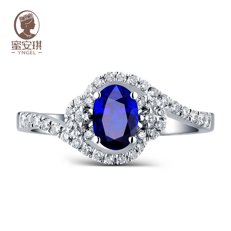蜜安琪 0.66~1.37CT天然蓝宝石戒指 18K金钻石镶嵌 彩色宝石定制