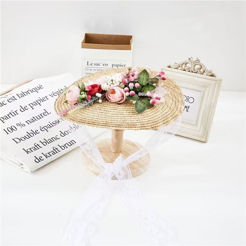 法式蕾丝帽田园草帽夏季遮阳女帽森系写真拍照时尚大号帽子拍摄道