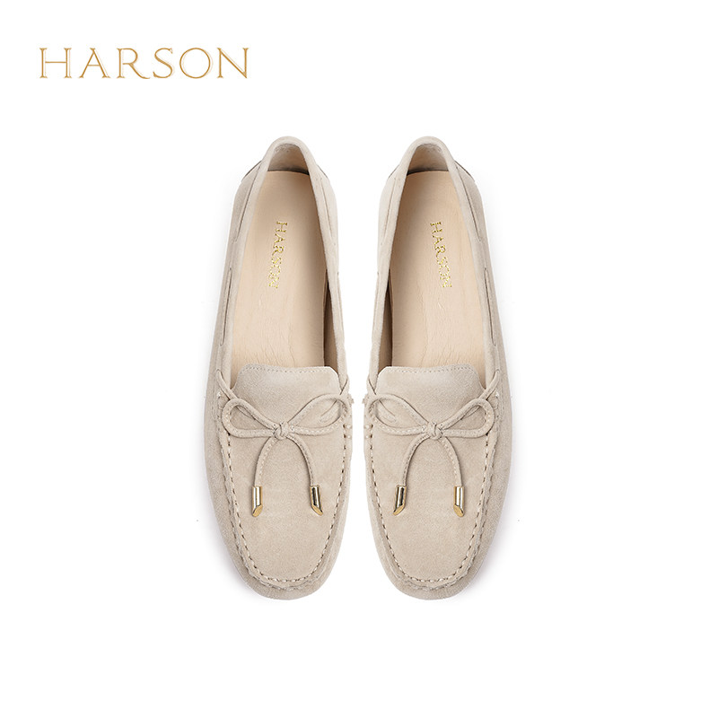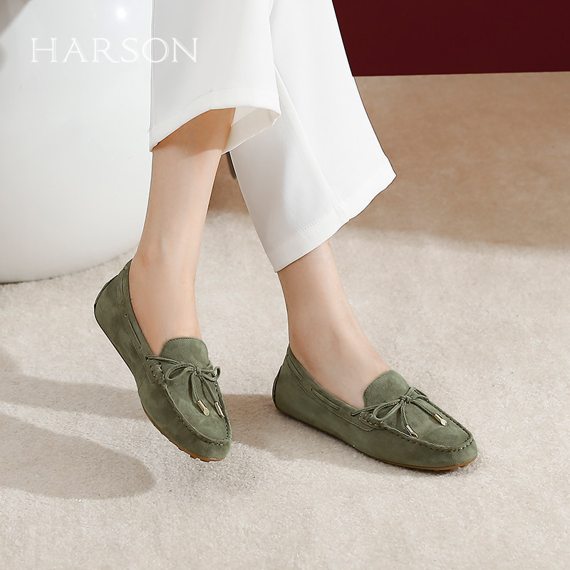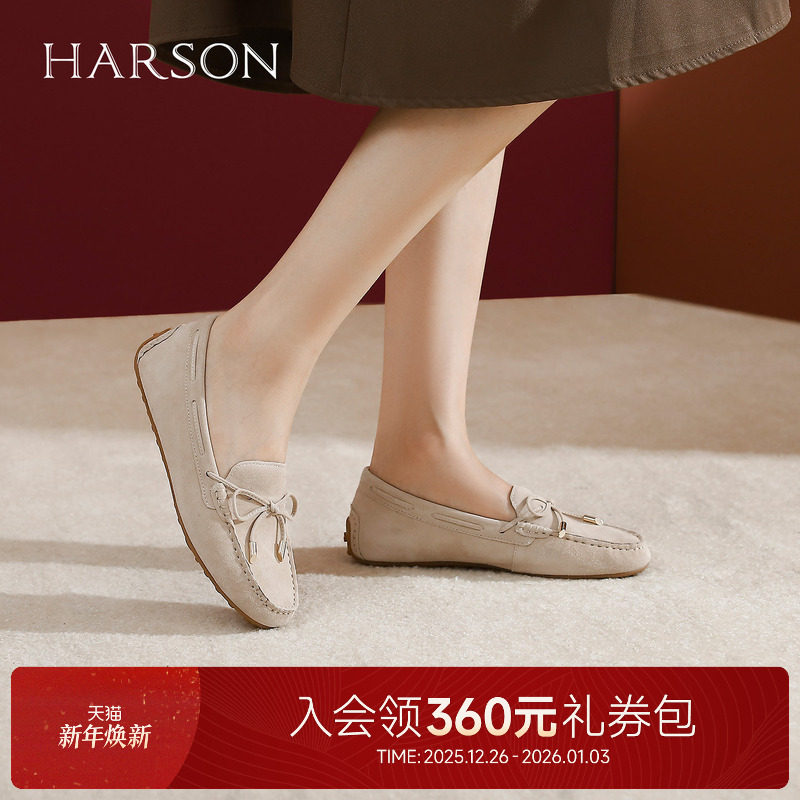 哈森平底鞋豆豆鞋一脚蹬复古休闲英伦女单鞋小皮鞋HL249430