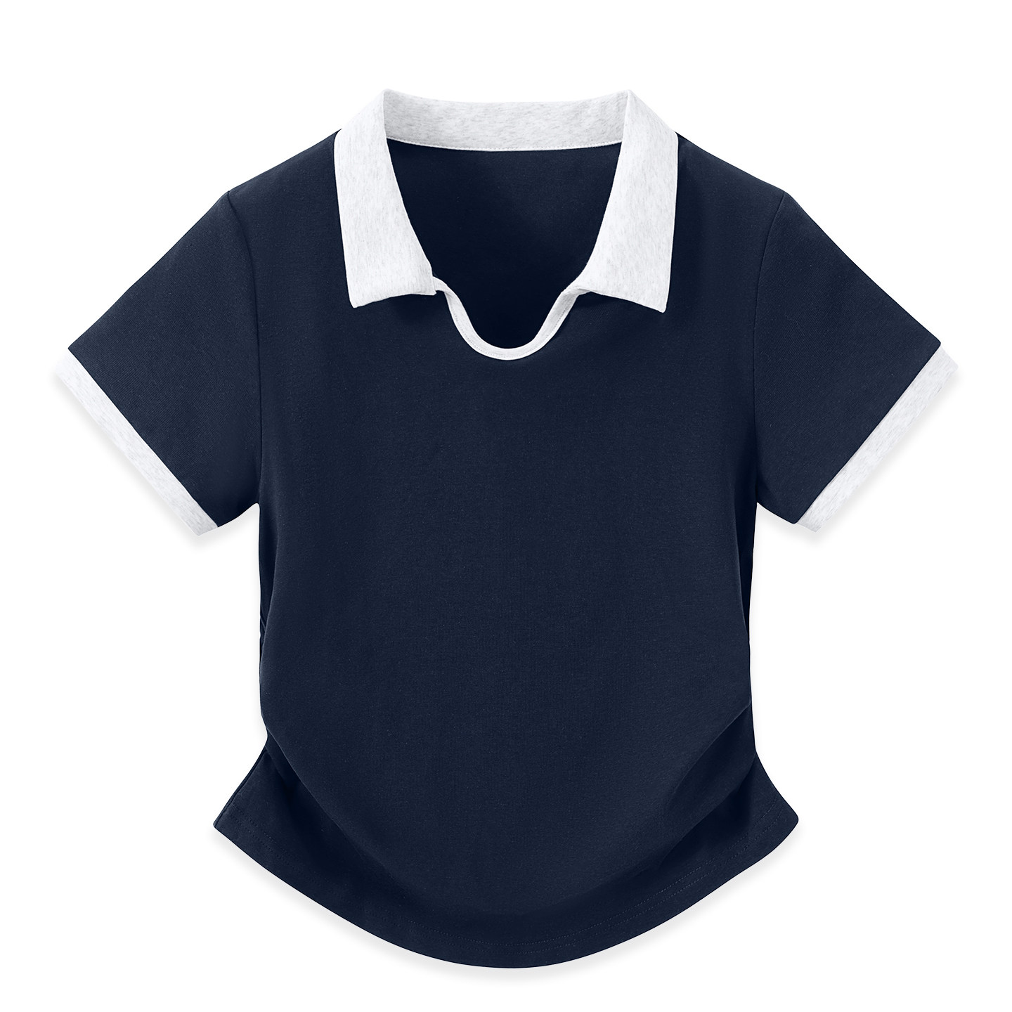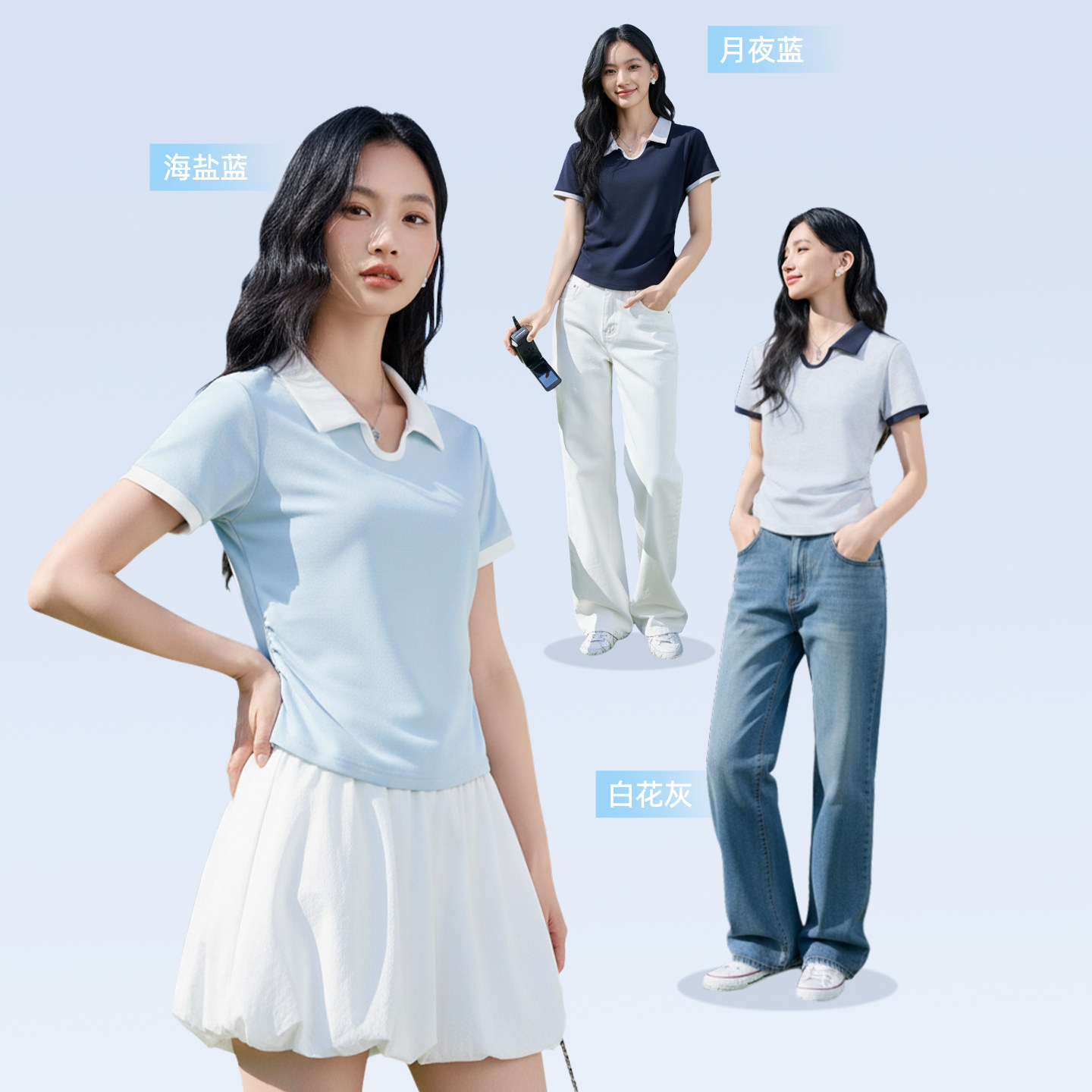 都市丽人短袖t恤女夏2026新款今年流行漂亮的女装撞色polo领上衣Y