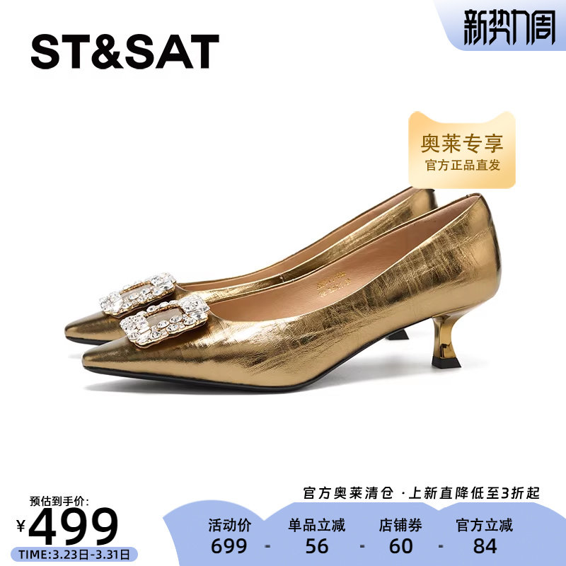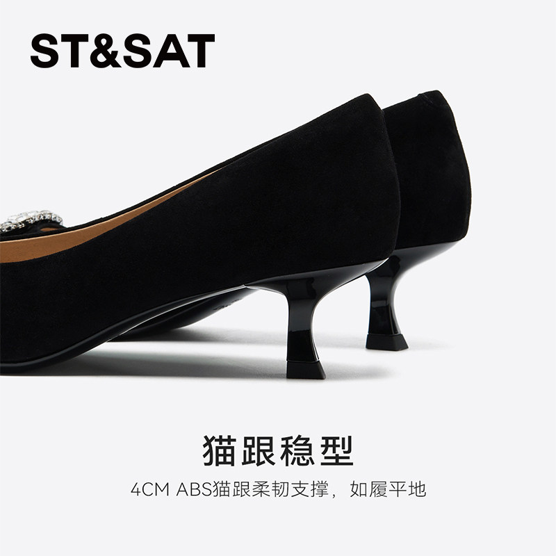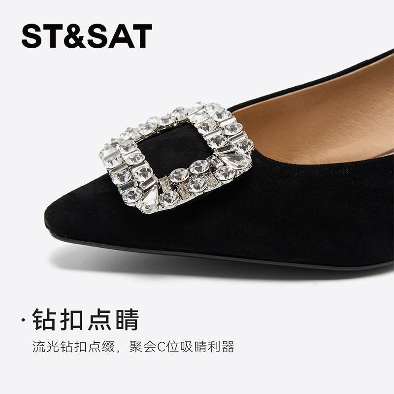 星期六尖头女鞋2025秋款优雅浅口细跟高跟欧美风女单鞋SSD3111086