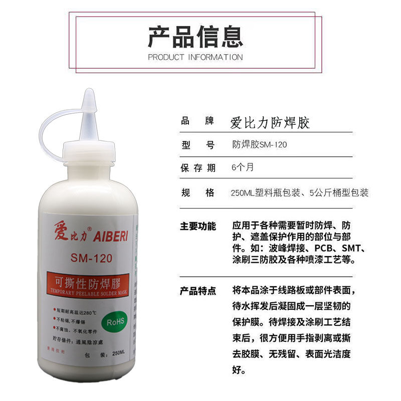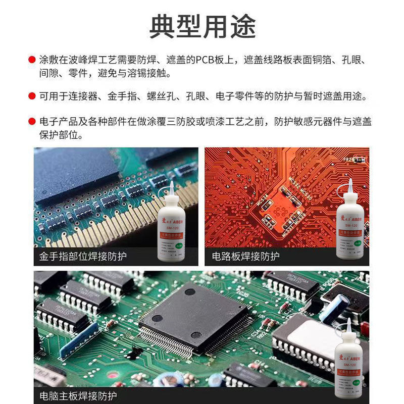 SM-120阻焊胶防焊胶芯片电子元器件临时保护遮盖好撕不粘锡不爆锡