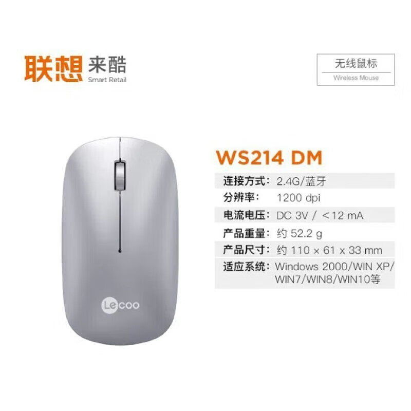 联想原装来酷WS214DM无线双模鼠标蓝牙2.4G台式机笔记本电脑正品