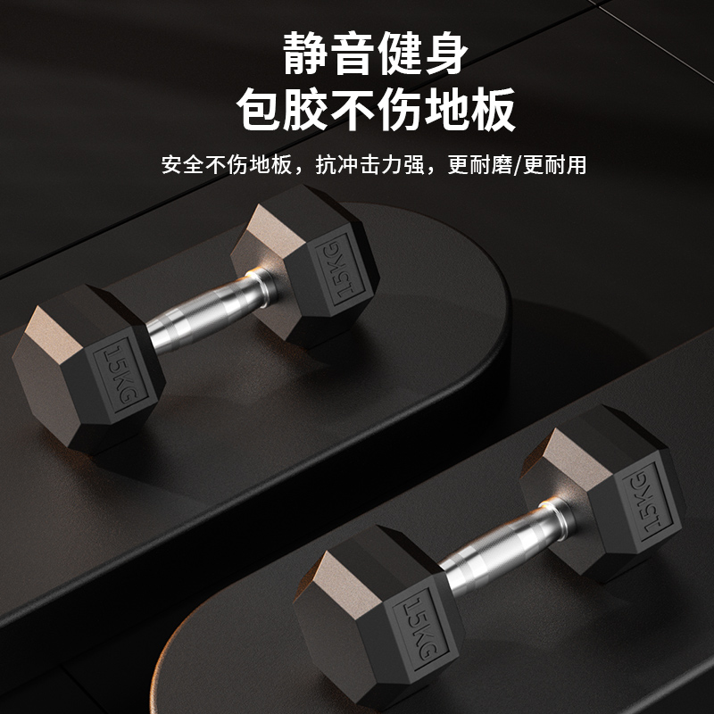 哑铃男士健身家用六角包胶5kg10kg一对男女生宿舍锻炼运动亚铃