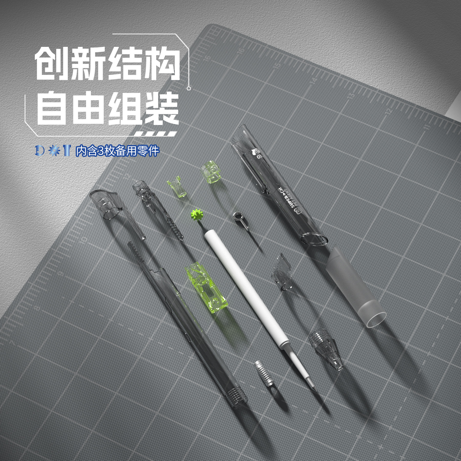 简创学生DIY拼装组装笔黑科技双控按动提拉中性笔黑色刷题考试笔
