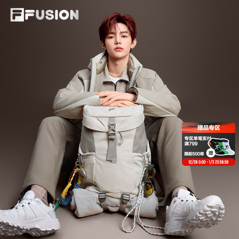 章昊同款FILA FUSION斐乐脊骨包女背包2025冬季新款男休闲双肩包