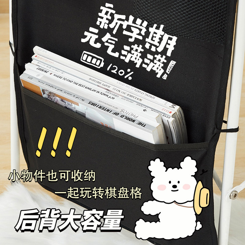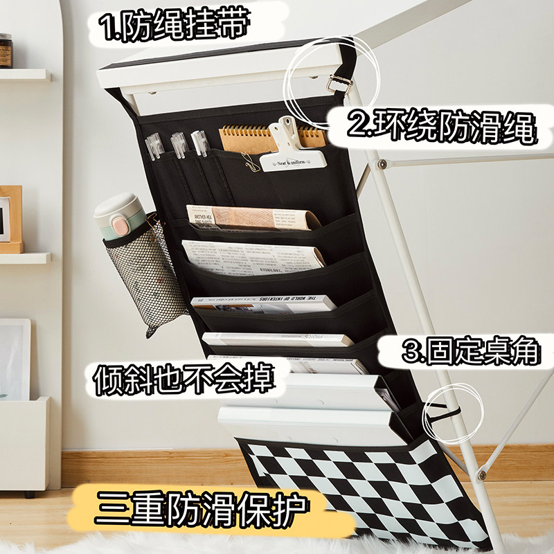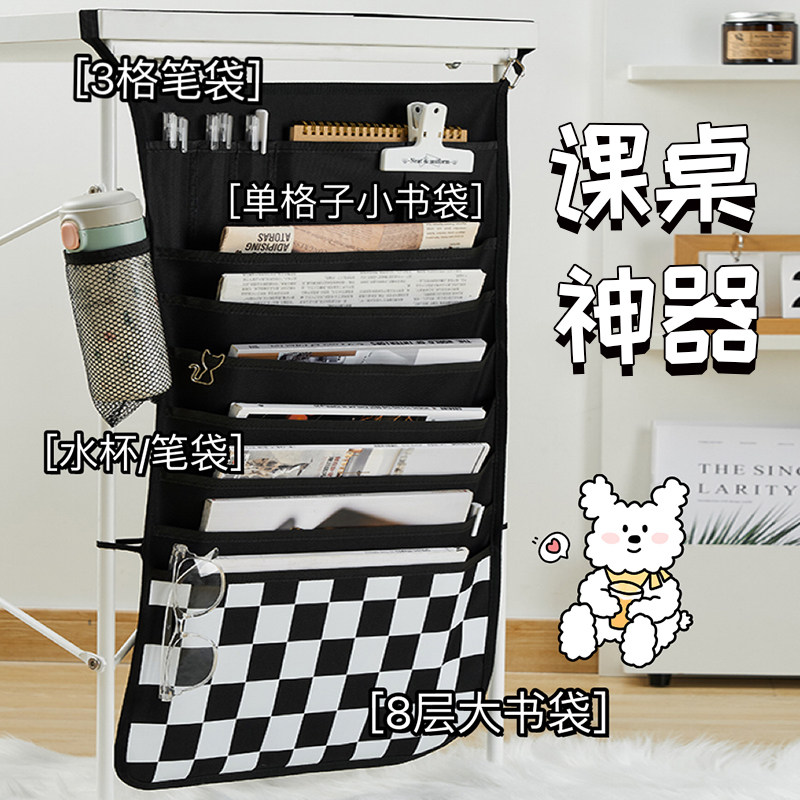 楷庭简约棋盘格挂书袋课桌收纳初中生大容量牛津布防水书桌侧边书袋挂袋高中生课桌收纳神器小学生书籍收纳袋