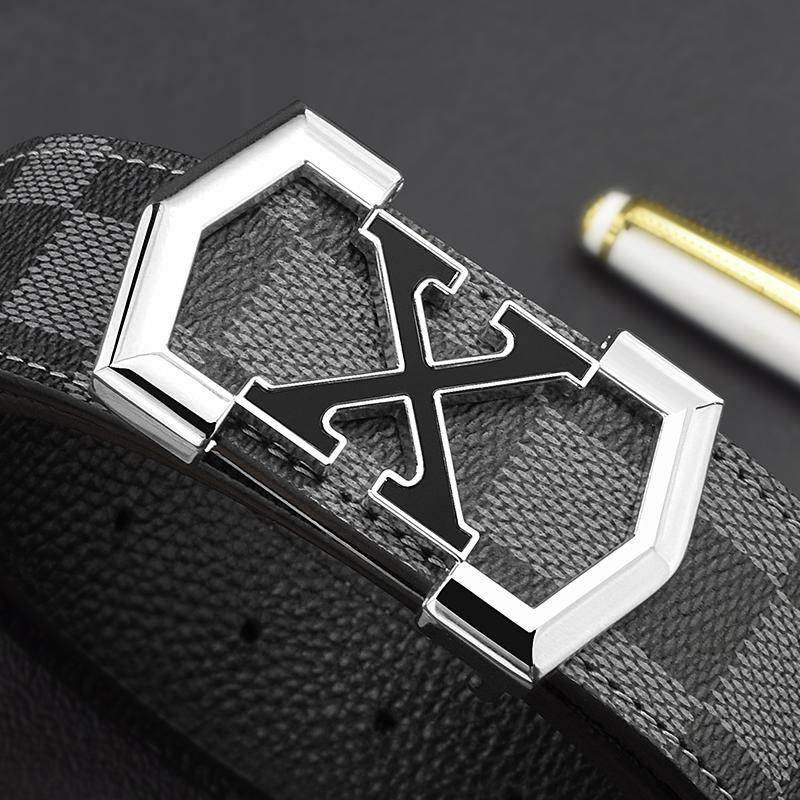 男仕潮流X字母皮带男士平滑扣年轻人简约时尚百搭学生夜纯牛皮