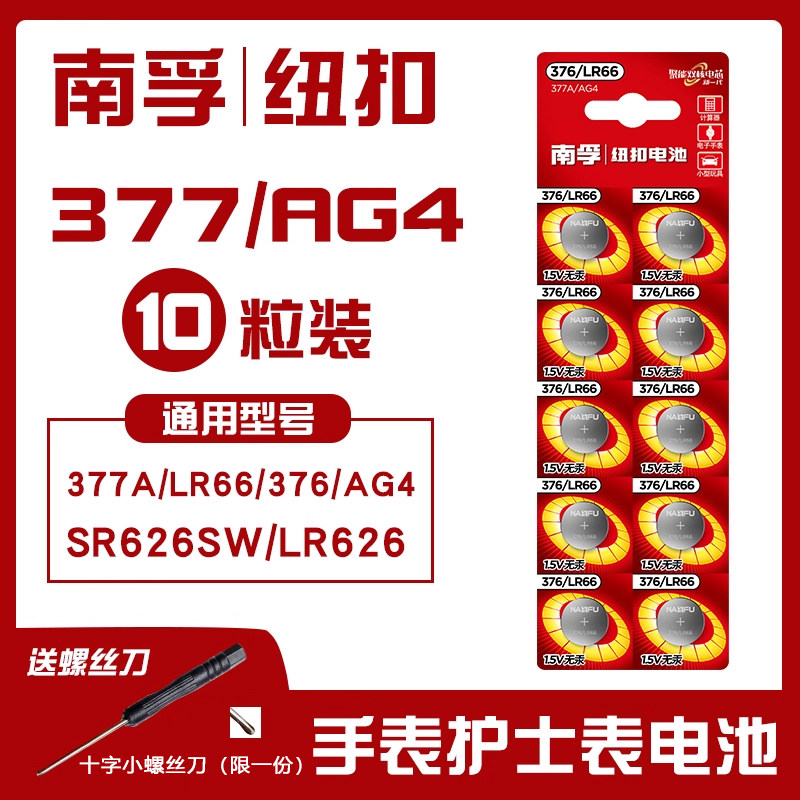 南孚纽扣电池SR626SW手表电池377a卡西欧纽扣电池376 LR626h LR66石英表钮扣电子dw斯沃琪swatch通用ag4型号