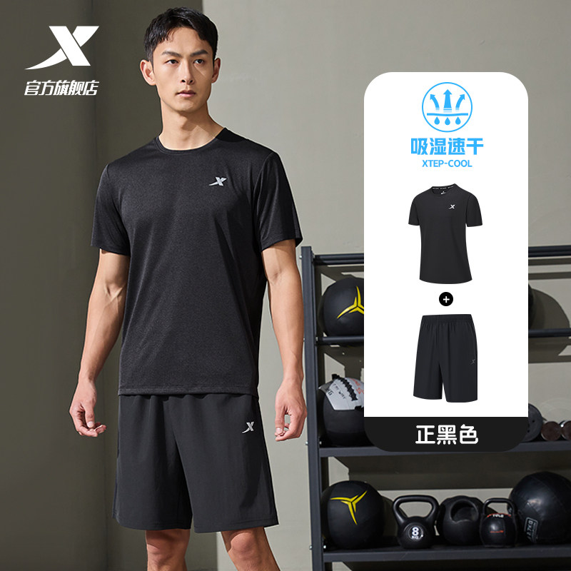 特步运动套装男夏季新款训练速干跑步短袖男装短裤短装健身运动服