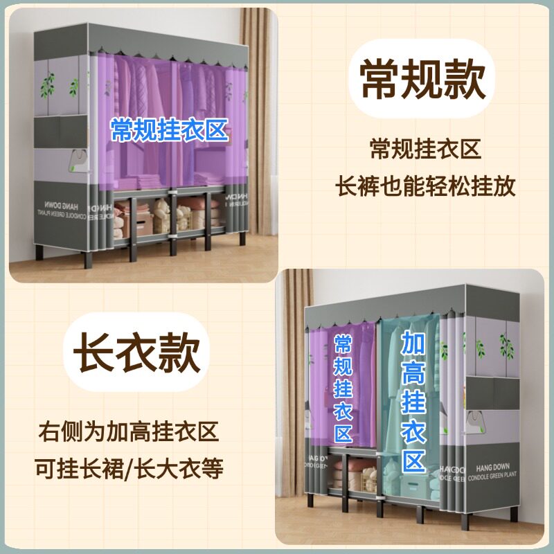 简易衣柜家用卧室出租房用收纳柜子组装全钢架结实耐用布衣柜衣橱