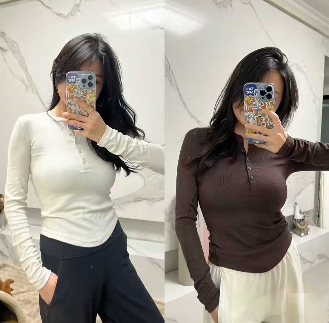 专柜hoIdTightlu同款莫代尔面料亨利polo衫长袖女瑜伽服修身显瘦