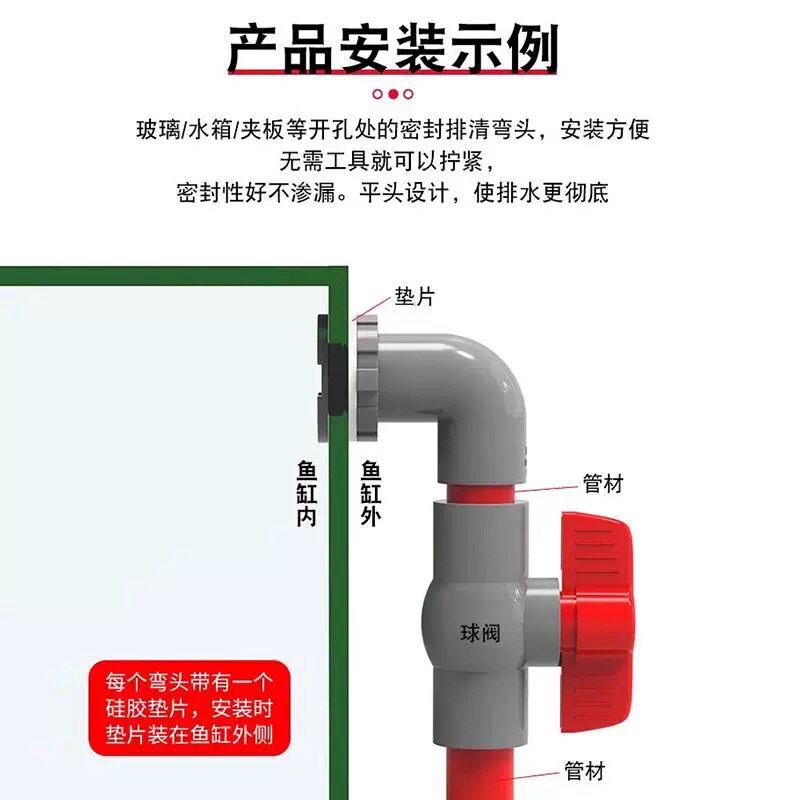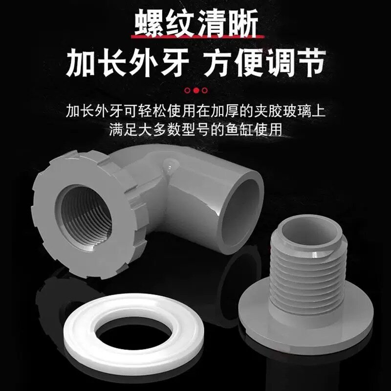 鱼缸圆孔排水弯头平头PVC排清下水口海鲜池塞排管配件周转箱弯排