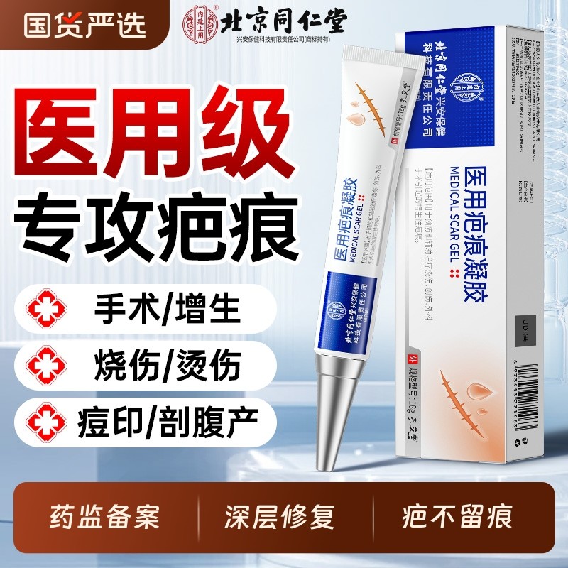 同仁堂祛疤膏疤痕增生凸起去除疙瘩修复除疤儿童烫伤医用硅酮凝胶