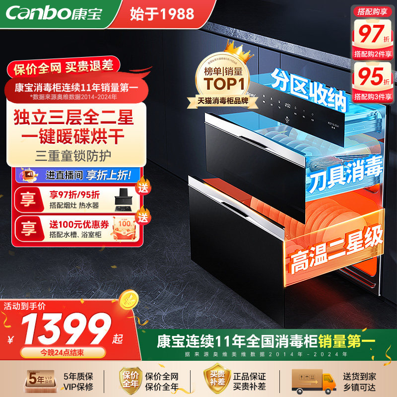 康宝磐石ESV1消毒柜家用嵌入式不锈钢家用碗柜碗筷大容量烘干一体