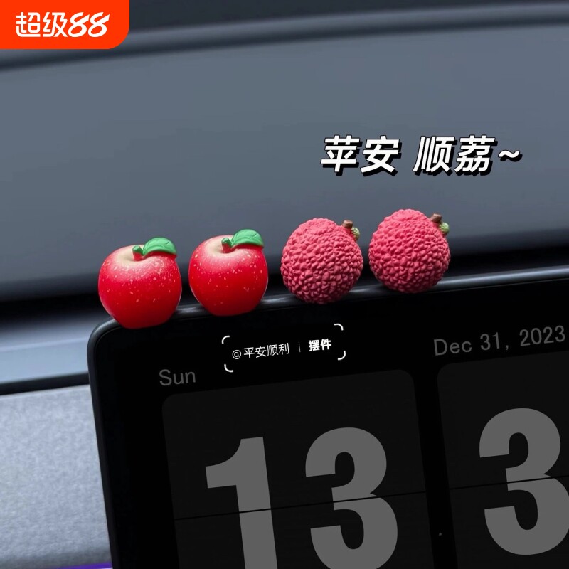 汽车摆件仿真荔枝中控台屏幕装饰品可爱卡通创意个性车载小摆件女