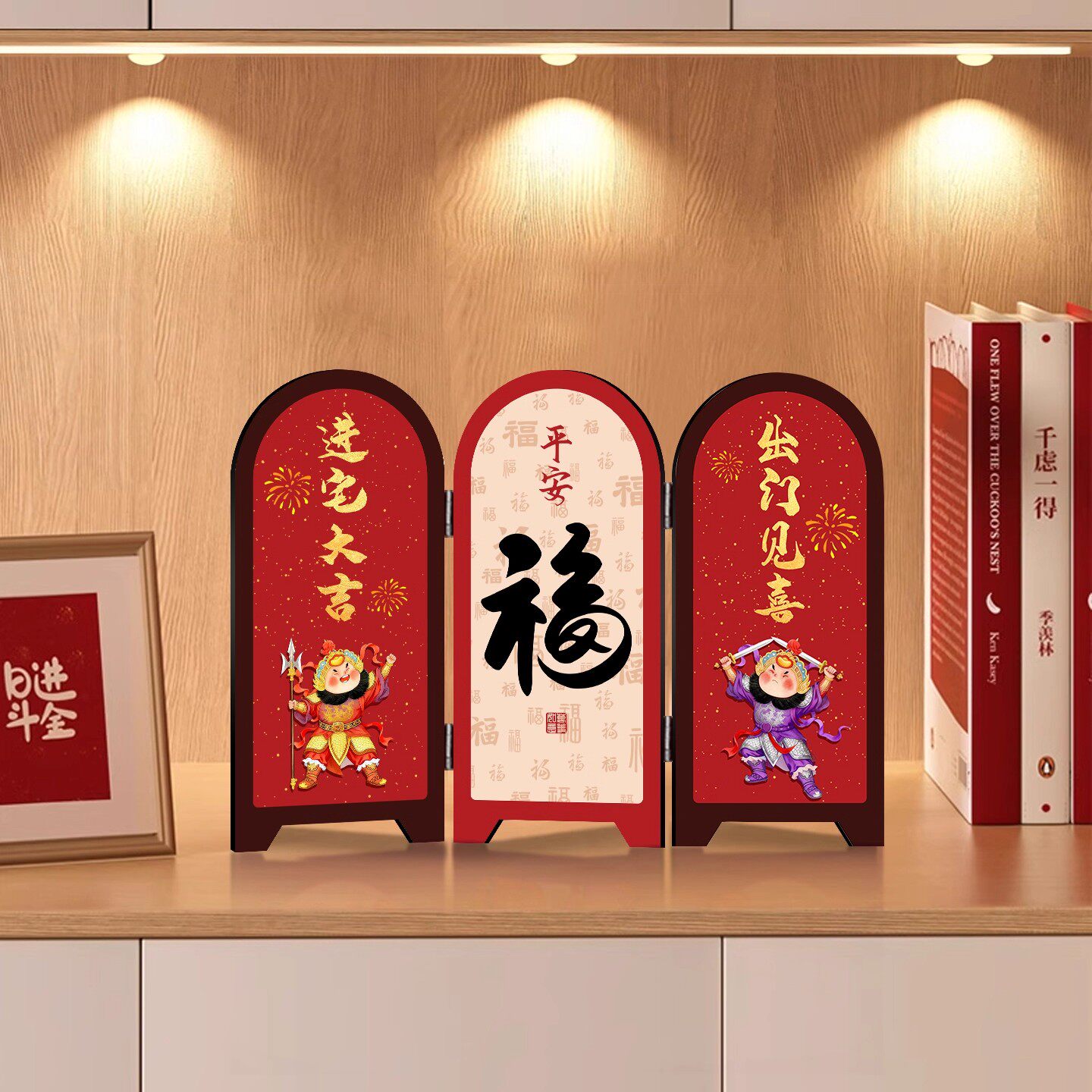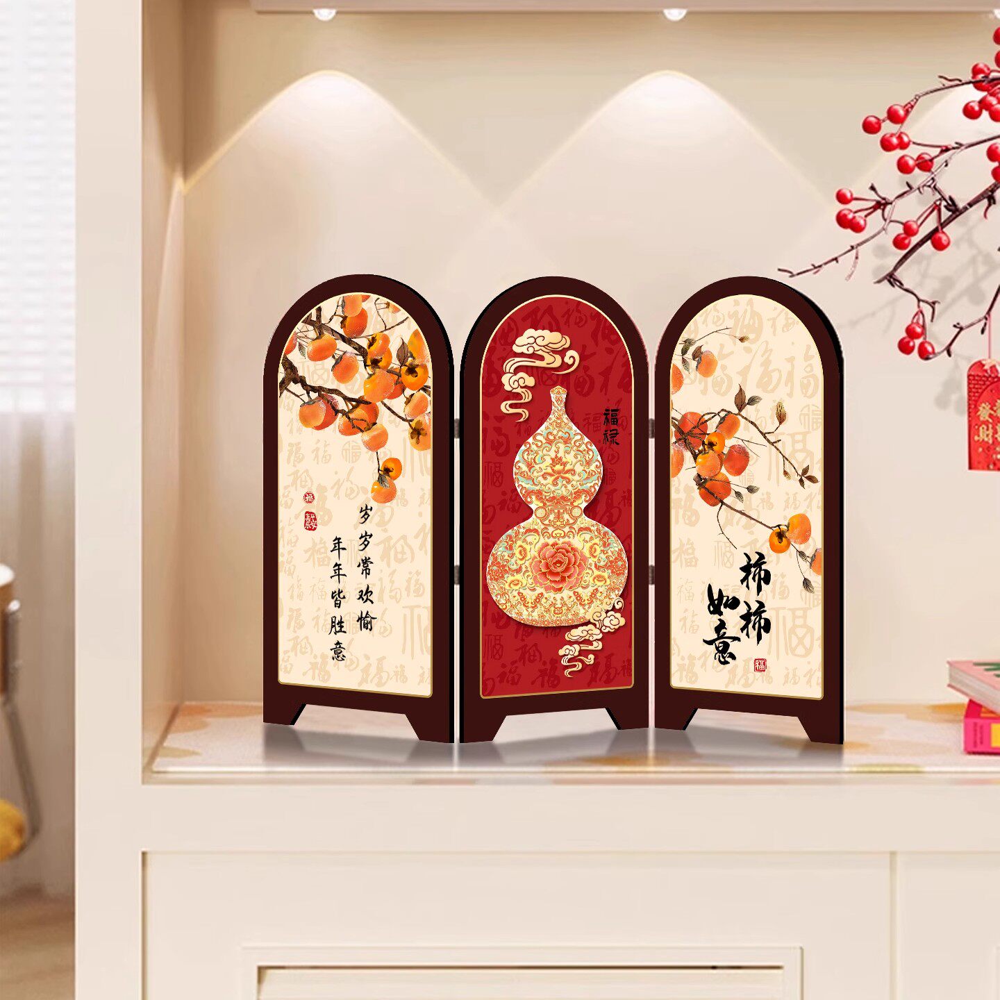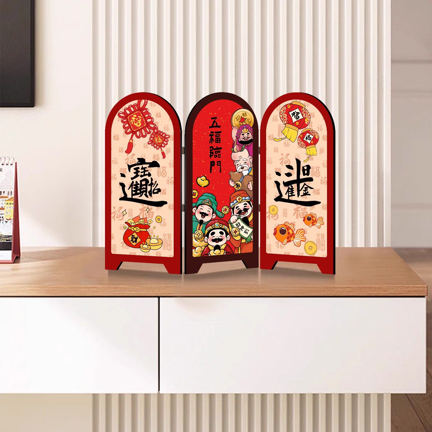 五福临门桌面摆台画客厅电视柜上创意屏风摆件寓意好财神桌上摆画