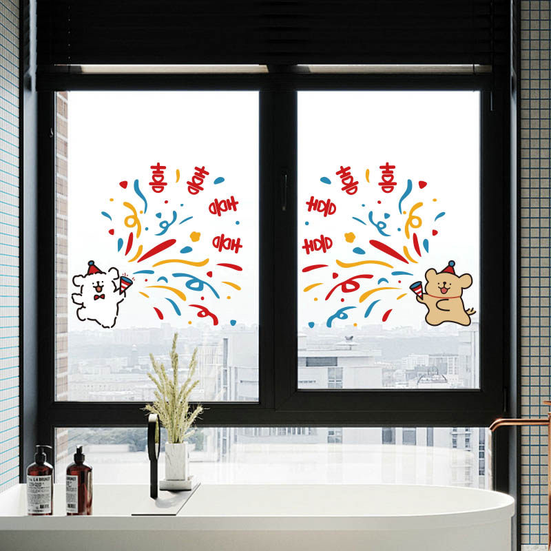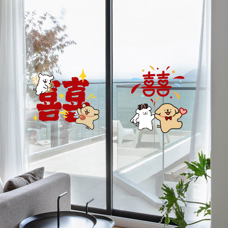 结婚专用静电贴线条小狗喜字贴婚房装饰布置玻璃窗花镜子贴纸囍字