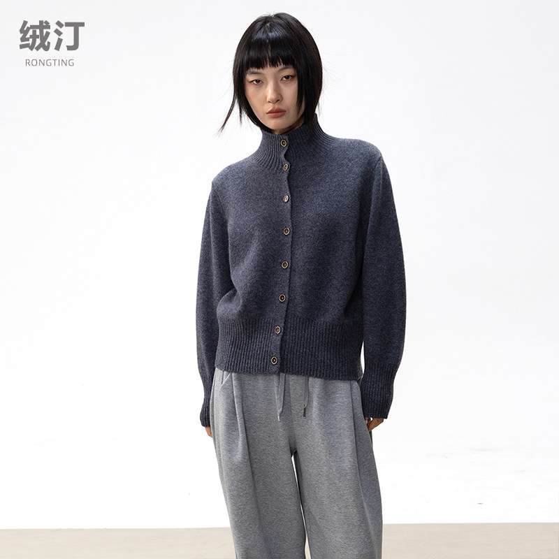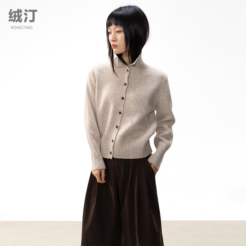 【所有女生的衣橱直播间】绒汀/定纺原纱 100%绵羊毛立领针织开衫