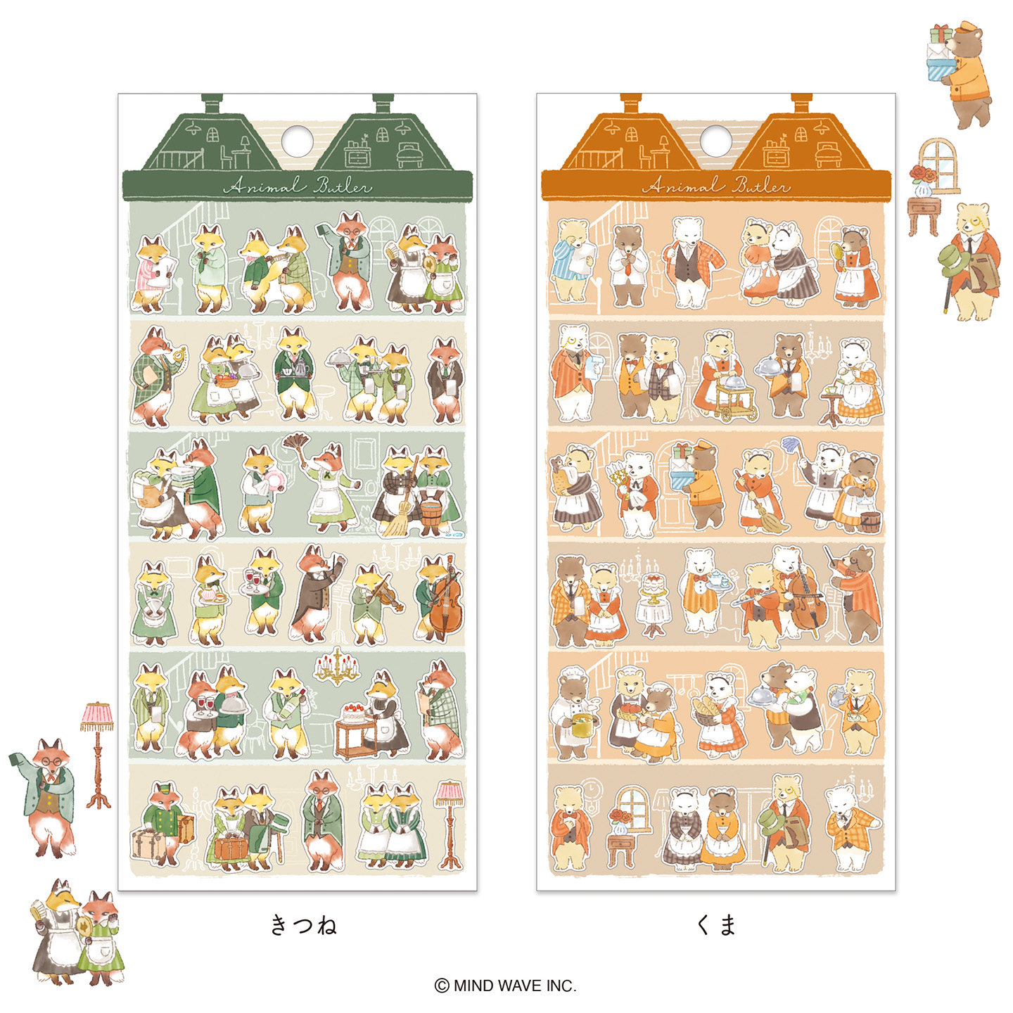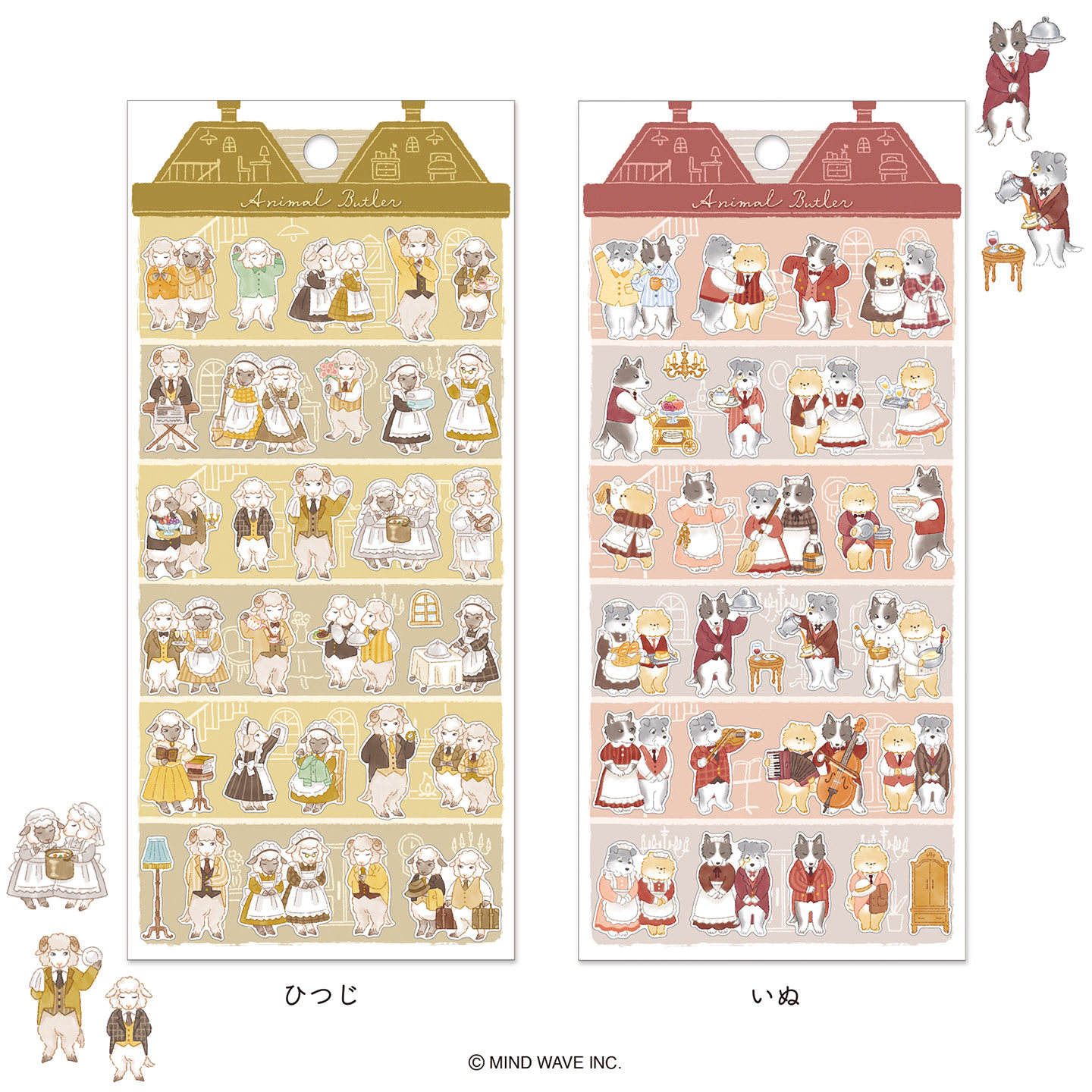 日本mind wave贴纸动物管家系列可爱猫狗狼狐狸熊绵羊穿衣服的动物管事手帐日记相册手机装饰拼贴素材贴画