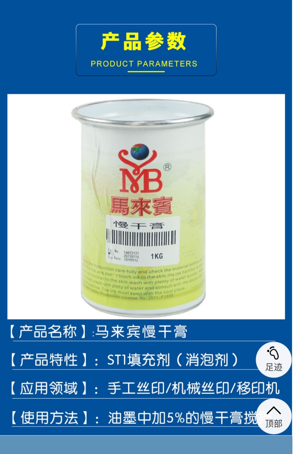 马来宾ST1慢干膏移印丝印油墨慢干膏消泡剂流平剂防拉丝油填充剂