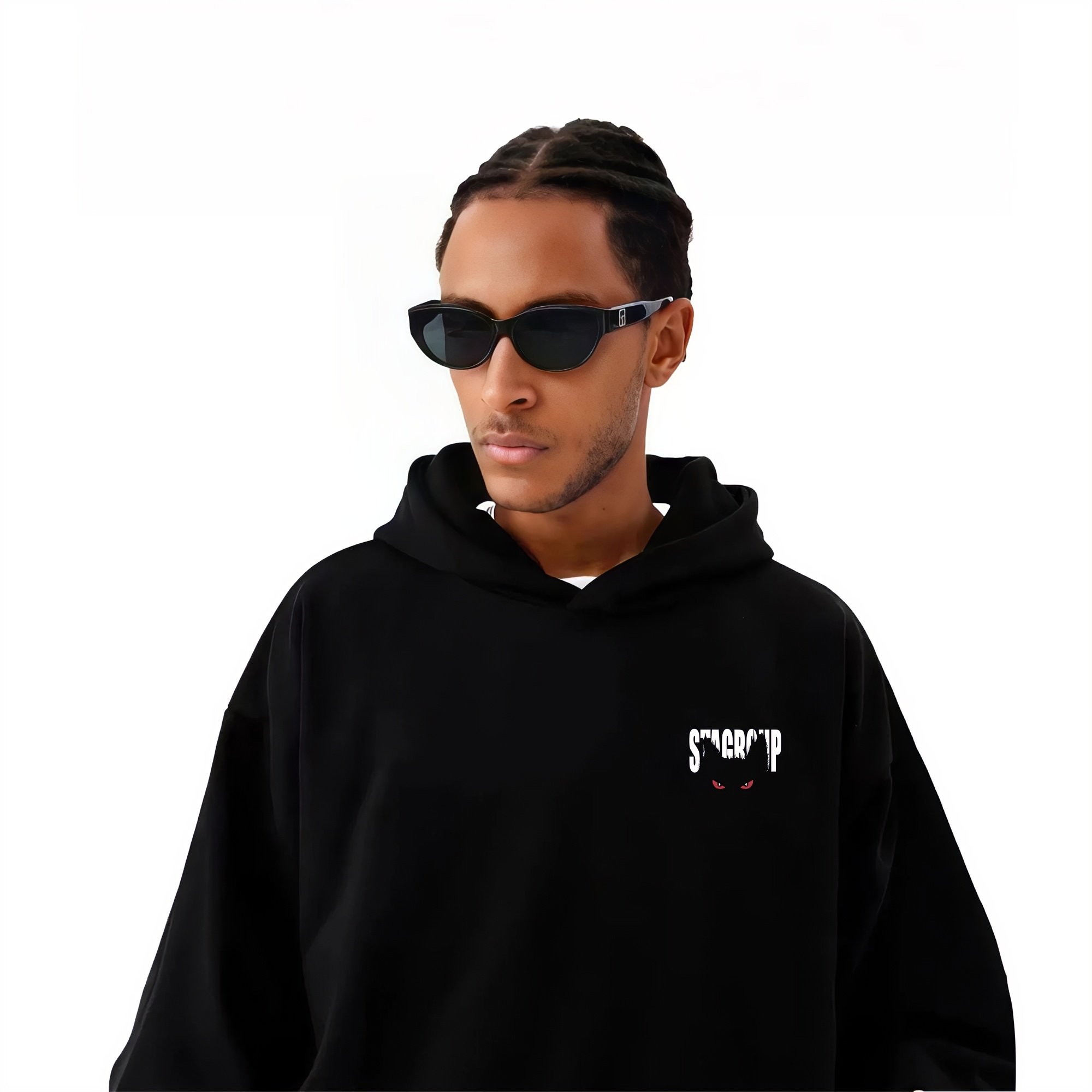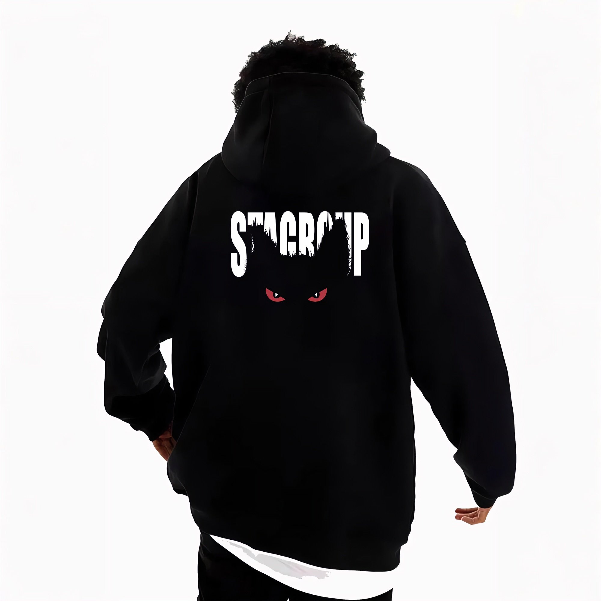 STA旗舰店搞怪猫眼印花连帽卫衣男女秋季美式潮牌重磅纯棉外套