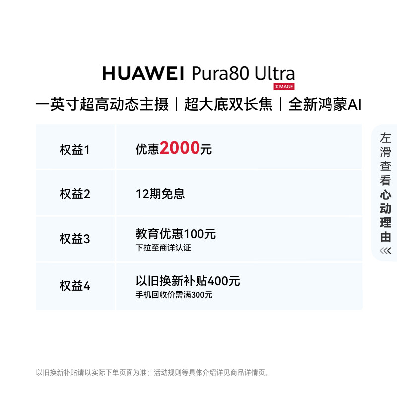 【12期免息】HUAWEI Pura 80 Ultra一英寸超高动态主摄 超大底双长焦 华为手机鸿蒙系统华为官方旗舰店