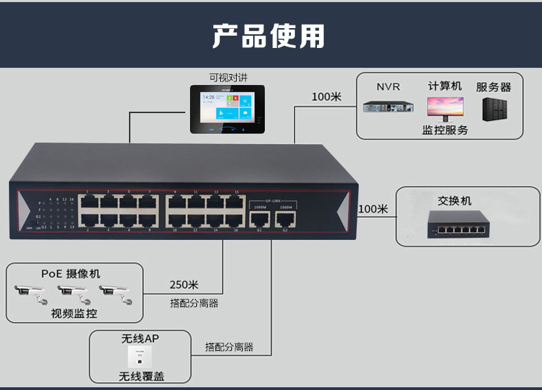 24V智能POE供电交换机支持可视对讲楼宇监控