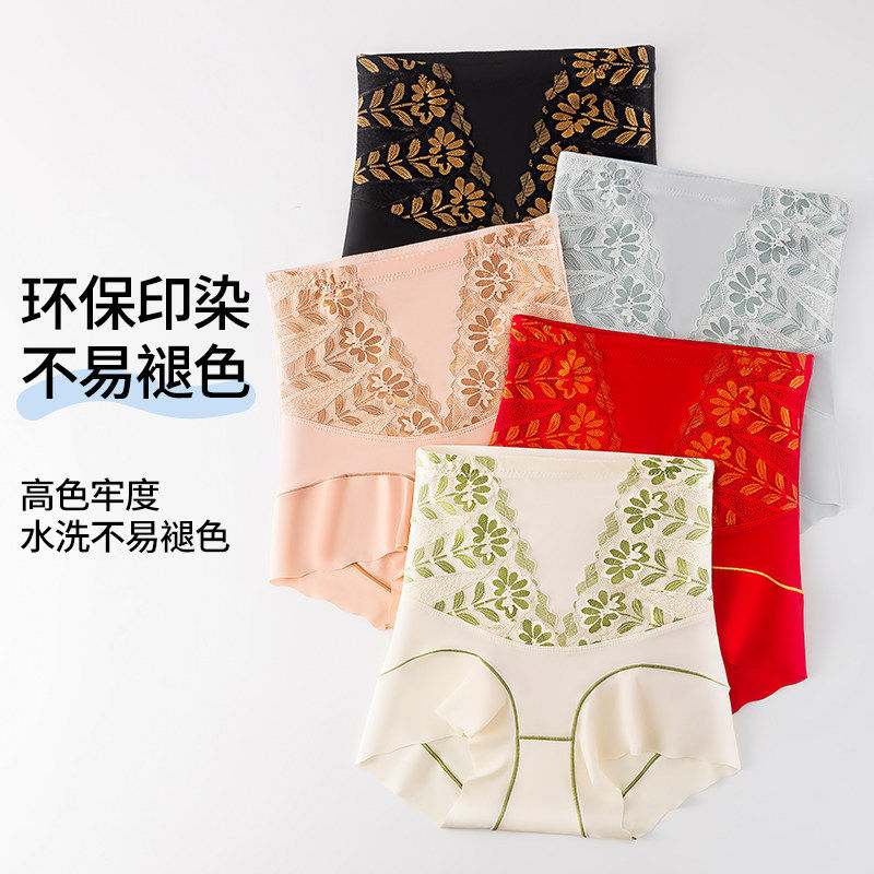 高腰收腹小肚子提臀裤无痕束腰刺绣打底裤女运动内裤透气塑身美体