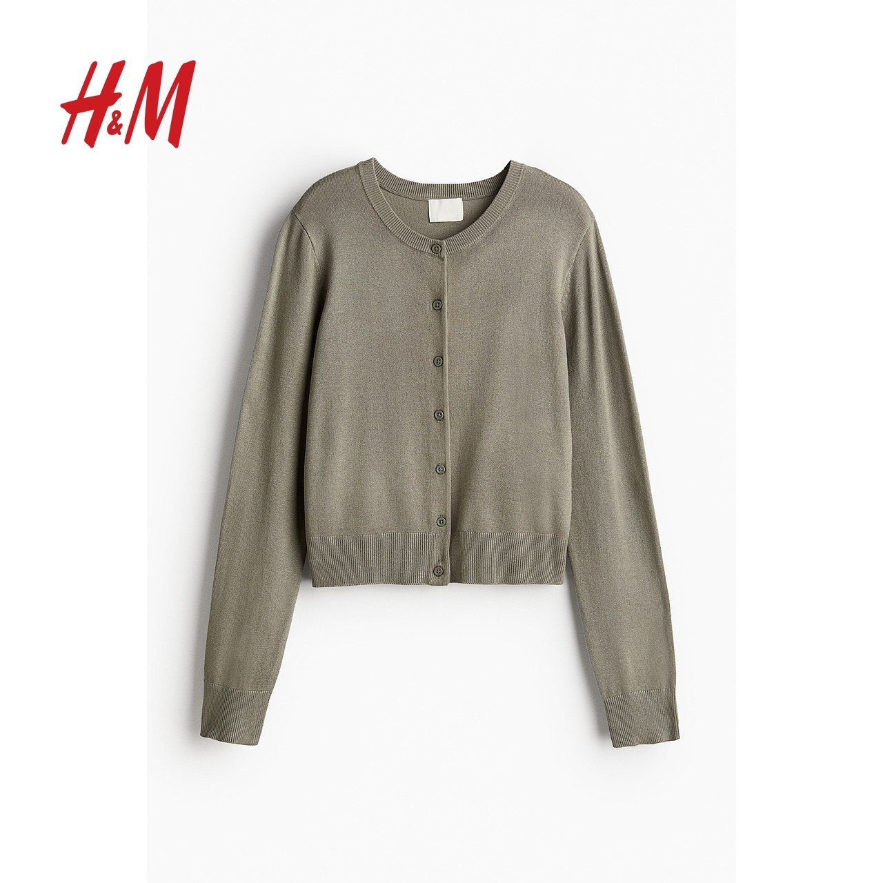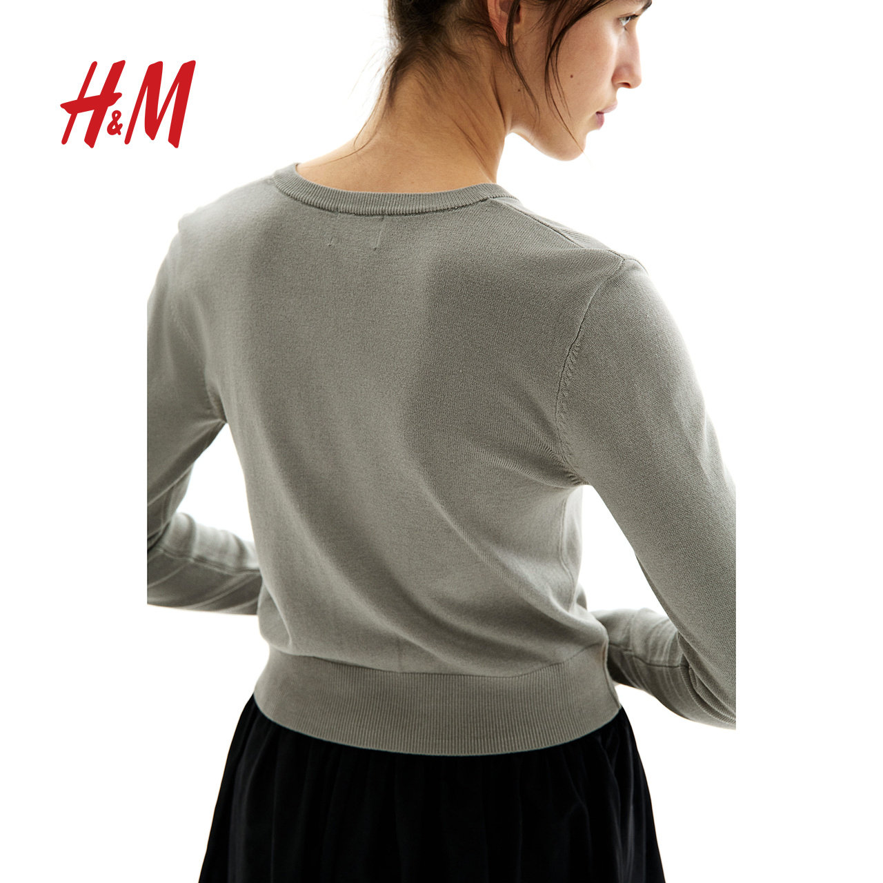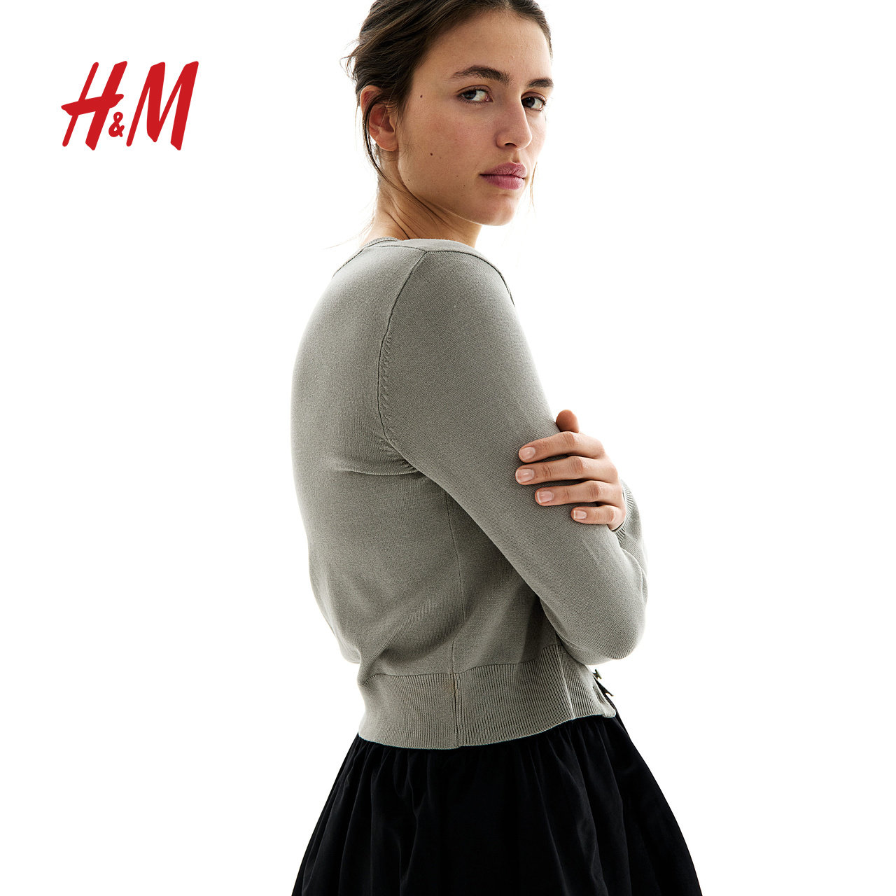 HM女装毛针织衫春季慵懒内搭舒适打底衫开衫外套0579541