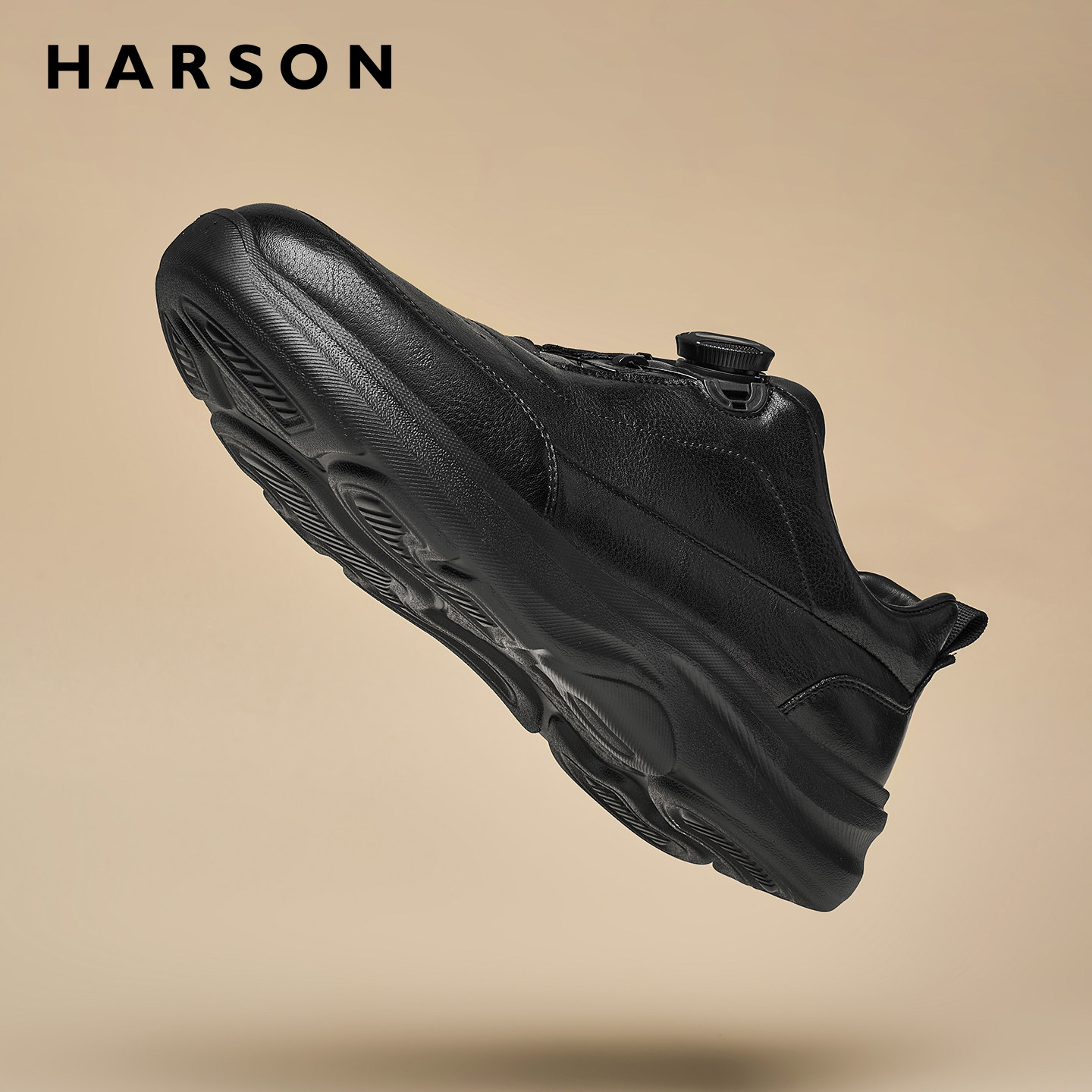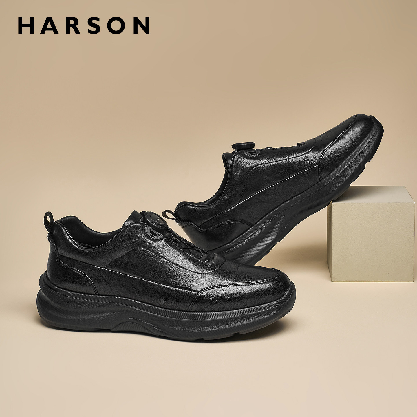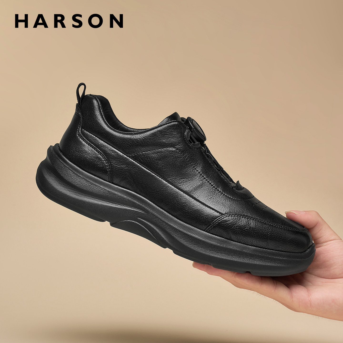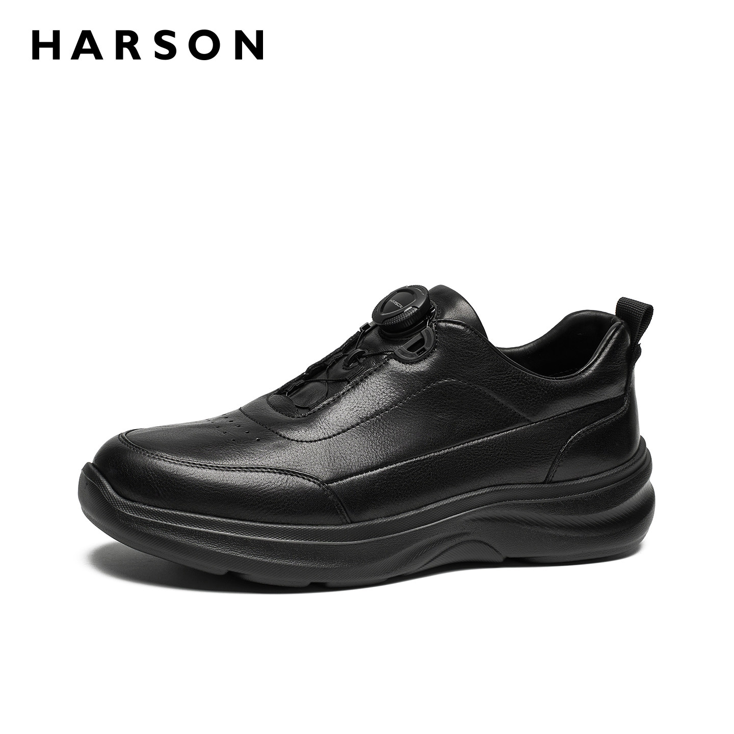 哈森男鞋秋冬新款真皮公务鞋软底舒适旋钮扣商务休闲皮鞋男增高鞋