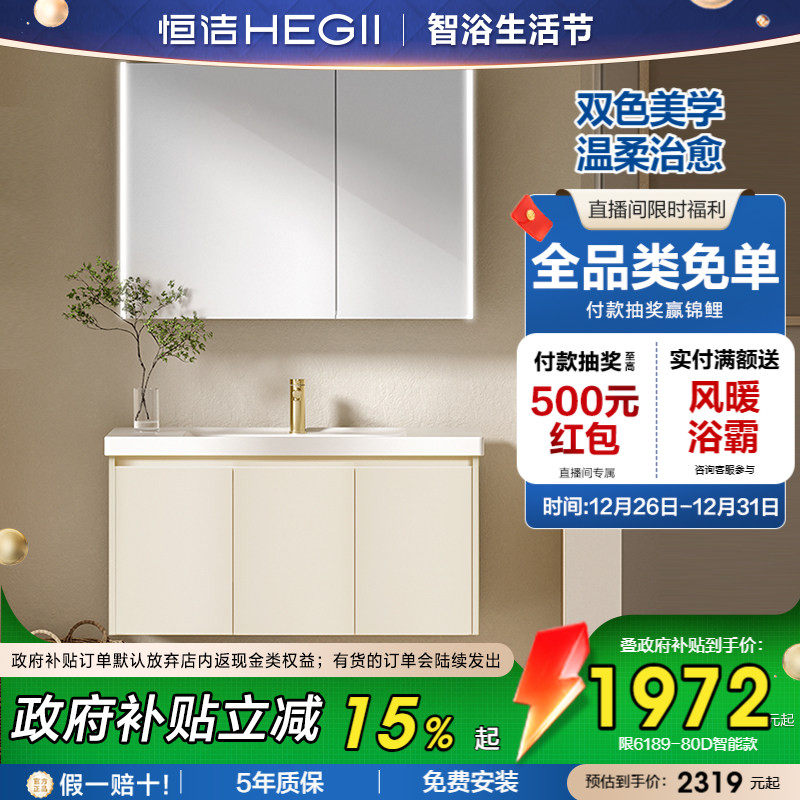 恒洁现代轻奢浴室柜组合奶油风卫生间洗脸洗手洗漱台一体盆陶瓷