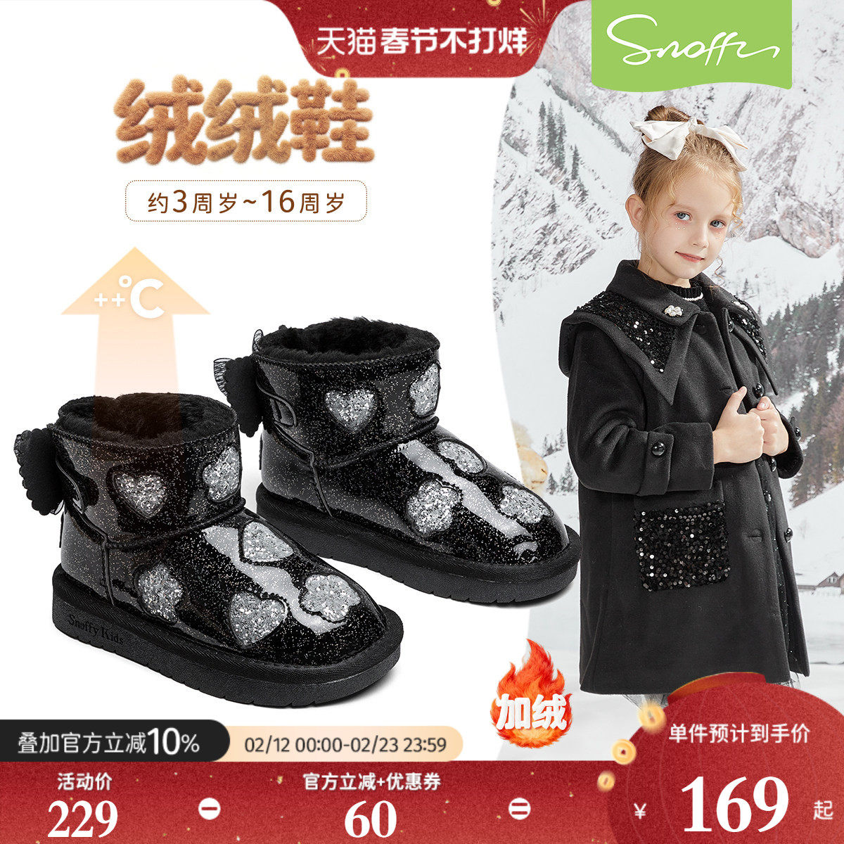 斯纳菲女童雪地靴2025冬季新款