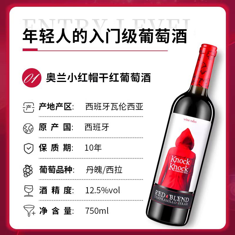 西班牙原瓶进口奥兰小红帽红酒干红半甜葡萄酒整箱礼盒热红酒女生