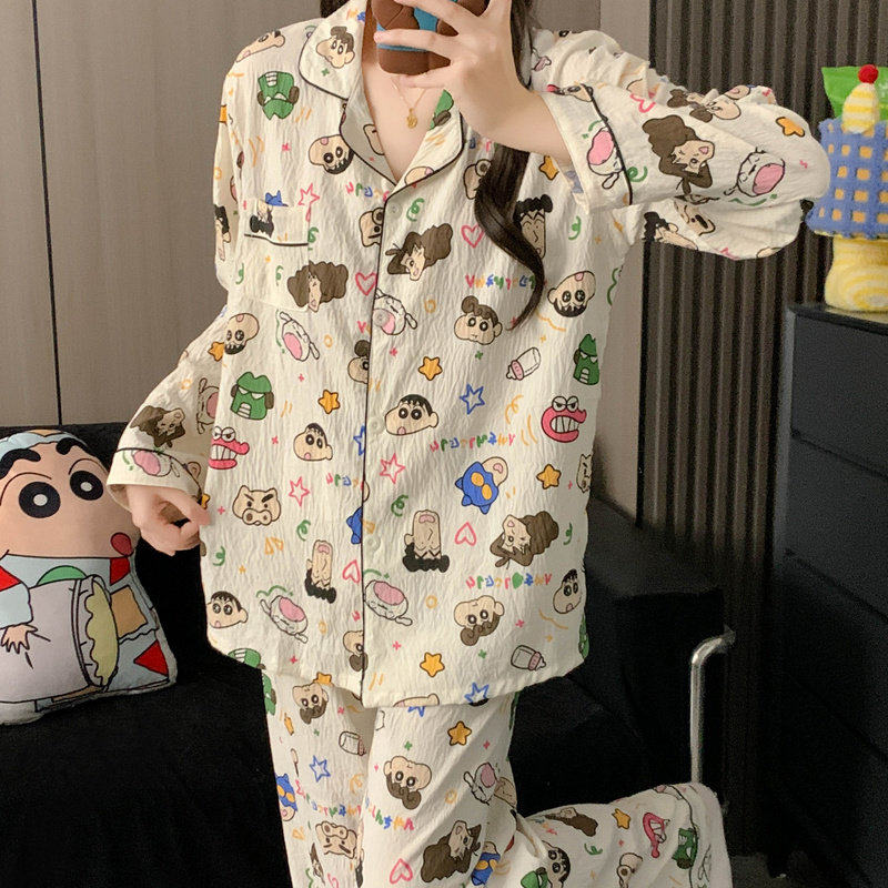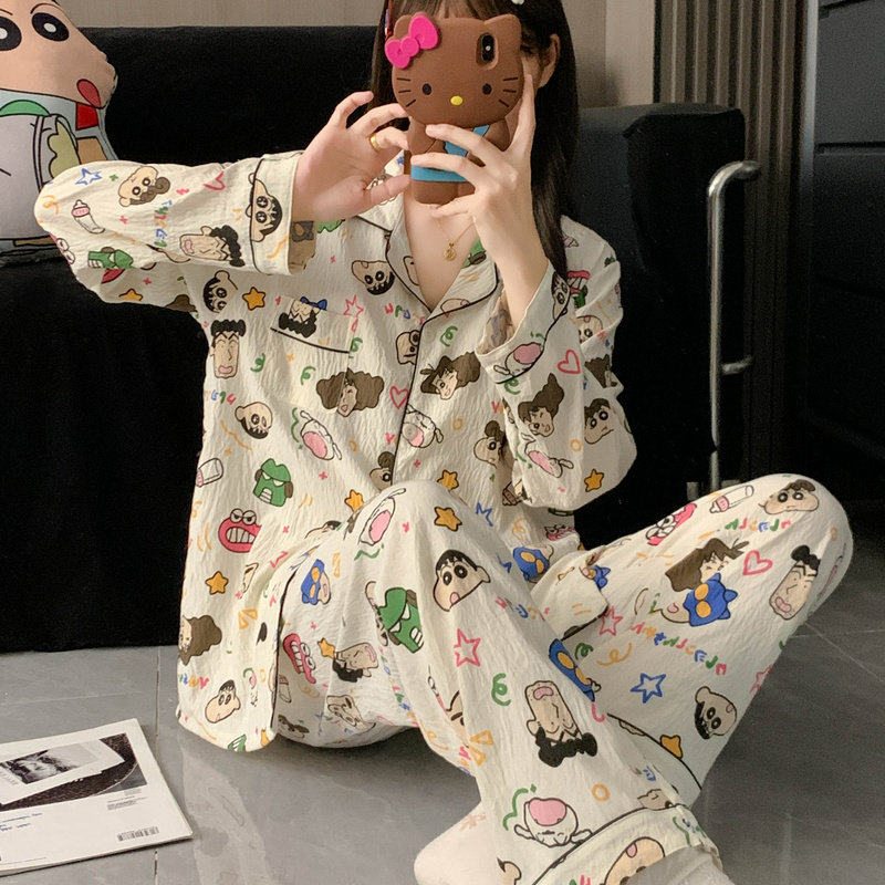 纯棉带胸垫睡衣女2025新款春秋季长袖套装可爱卡通韩版家居服秋冬
