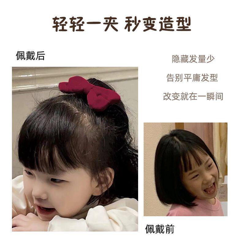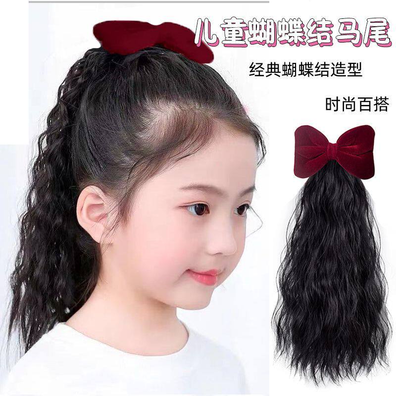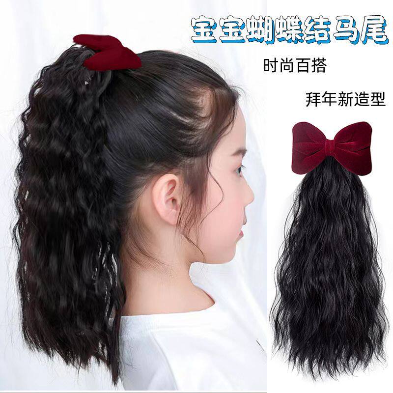 新春发丝蝴蝶结儿童假发仿真丝绒时尚洋气可爱小公主蓬松卷发马尾