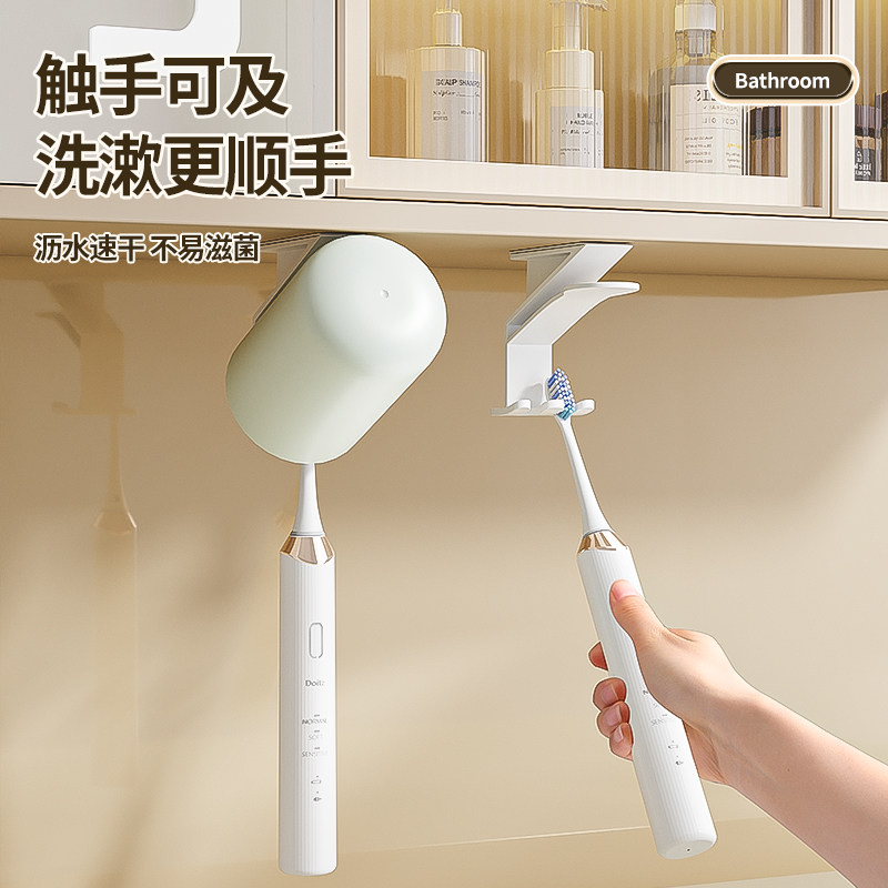 镜柜下牙刷置物架卫生间洗漱台免打孔漱口杯电动牙刷收纳摆放架