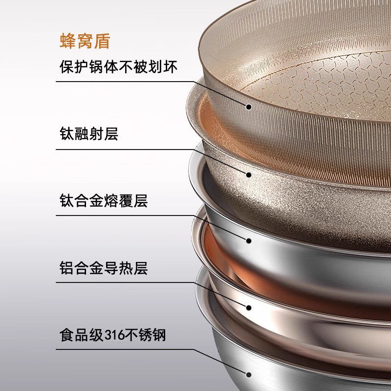 【新品】康巴赫七代真钛蜂窝锅家用无涂层炒锅不锈钢不粘锅炒菜锅