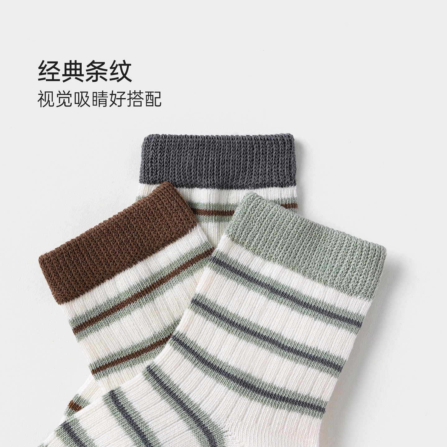 babylove婴儿袜子春秋中筒袜宝宝条纹百搭护脚袜运动弹力袜3双装