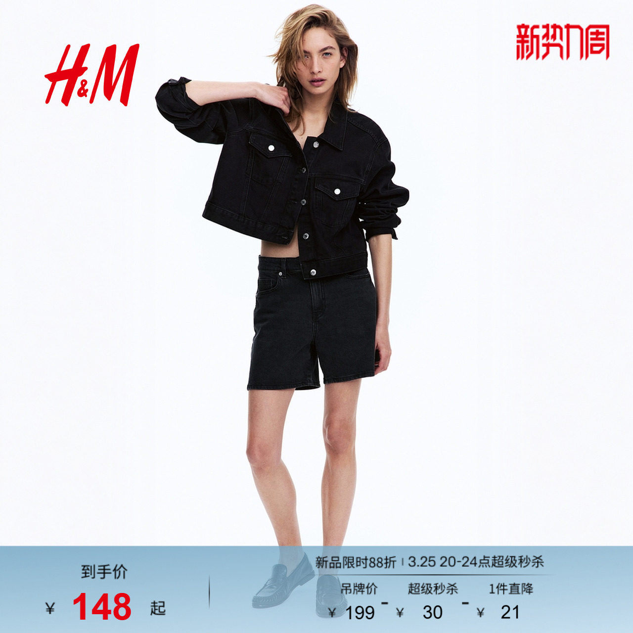 HM女装牛仔裤春季潮流高腰修身基础款辣妹热裤牛仔短裤1222124