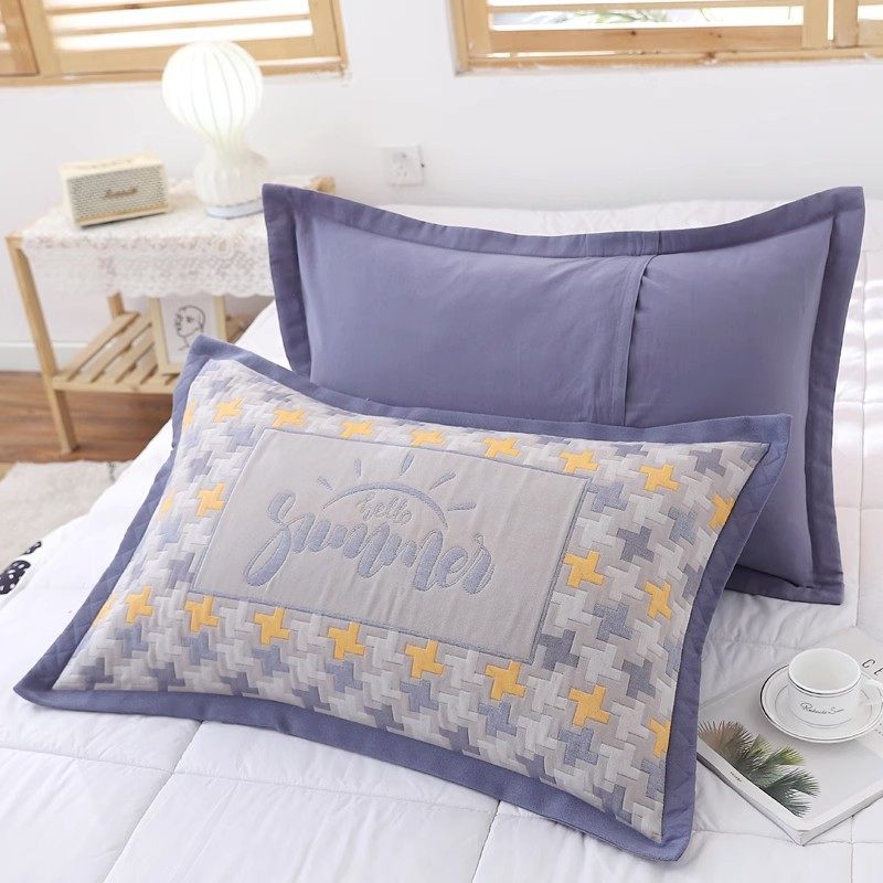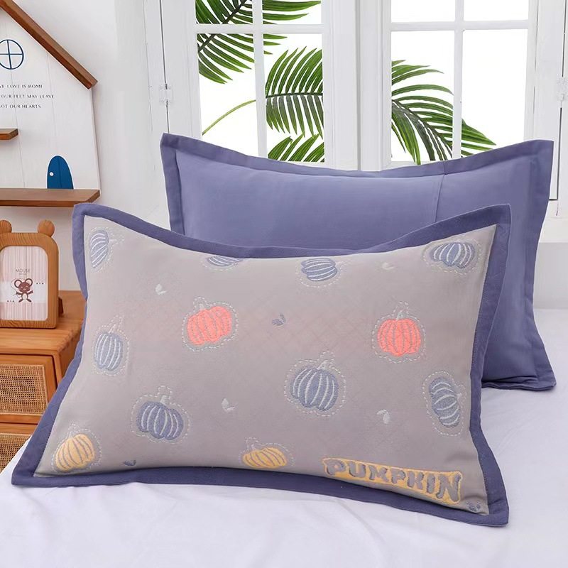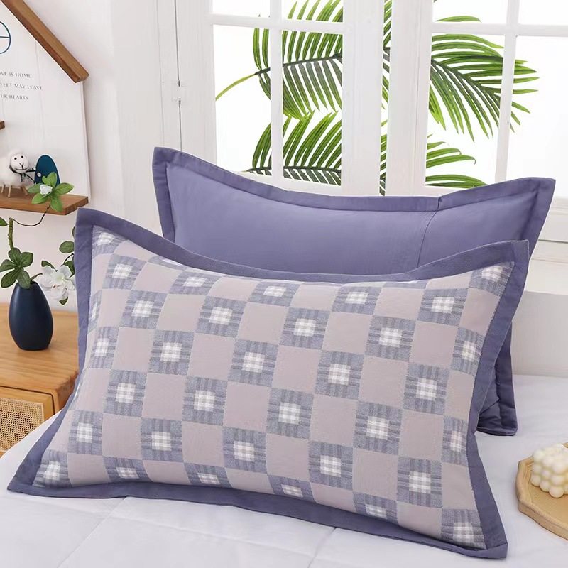 全棉四层纱布枕套48X74乳胶枕40X60用吸汗加厚纯棉成人大号枕头套