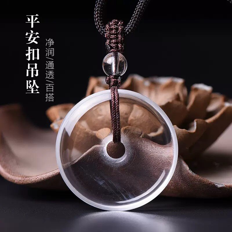 lisv天然白水晶吊坠平安扣挂件晶体透男女情侣项链本命年饰品礼物