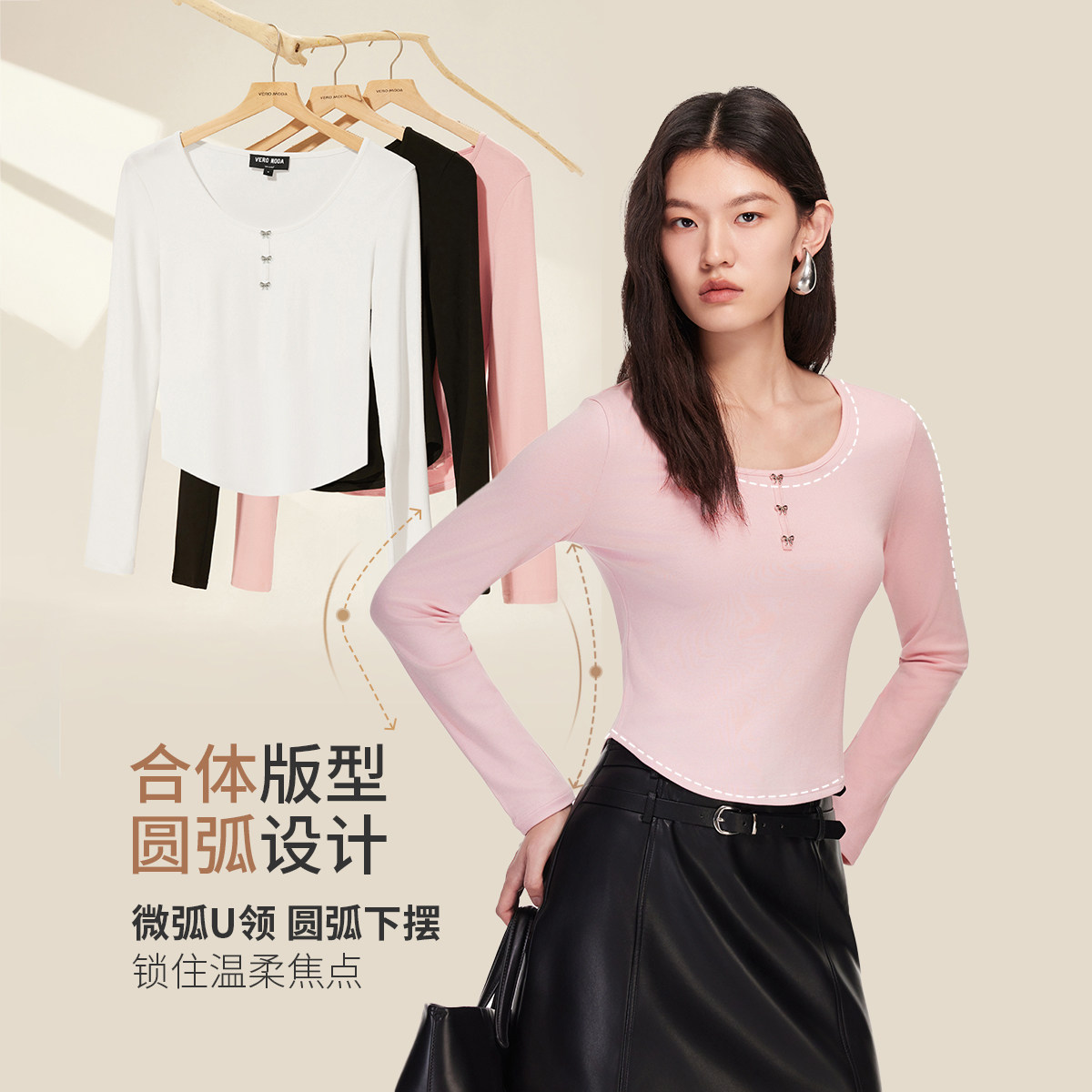 【小圆满】Vero ModaT恤2026春季新款蝴蝶结U领纯色修身短上衣