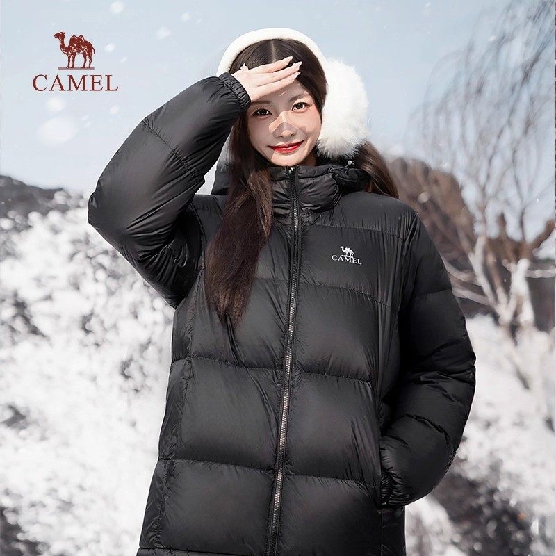 骆驼火山羽绒服男冬季2025新款外套女情侣反季短款连帽黑色面包服