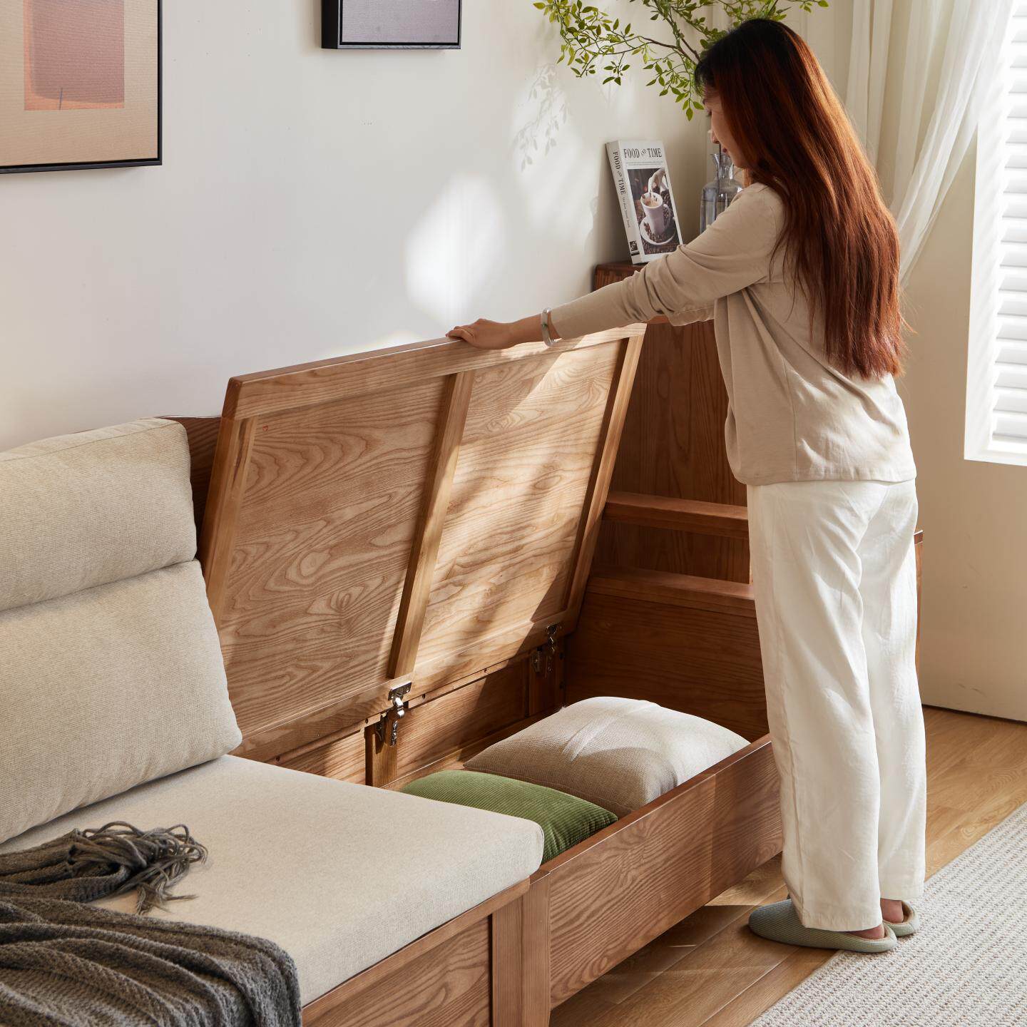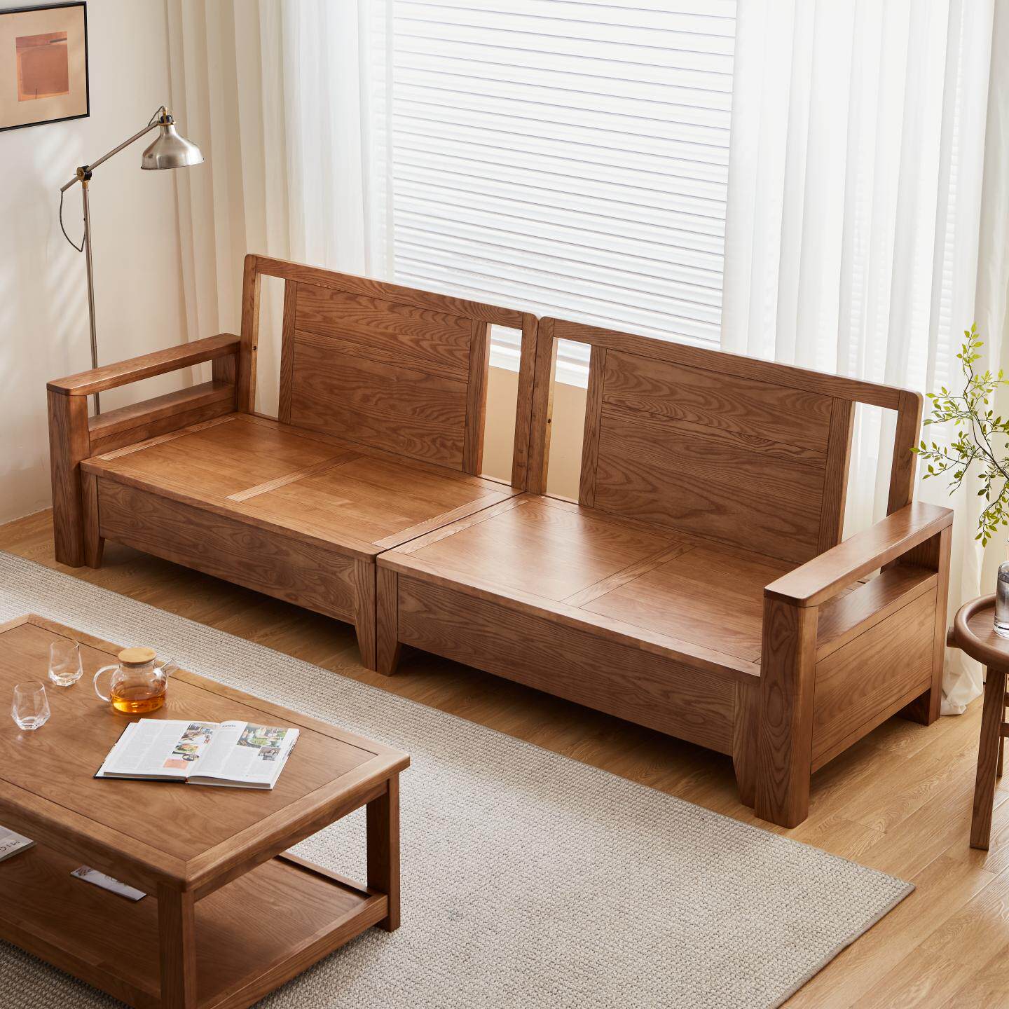 实木沙发新中式橡木真皮沙发北欧客厅小户型家具原木直排布艺沙发