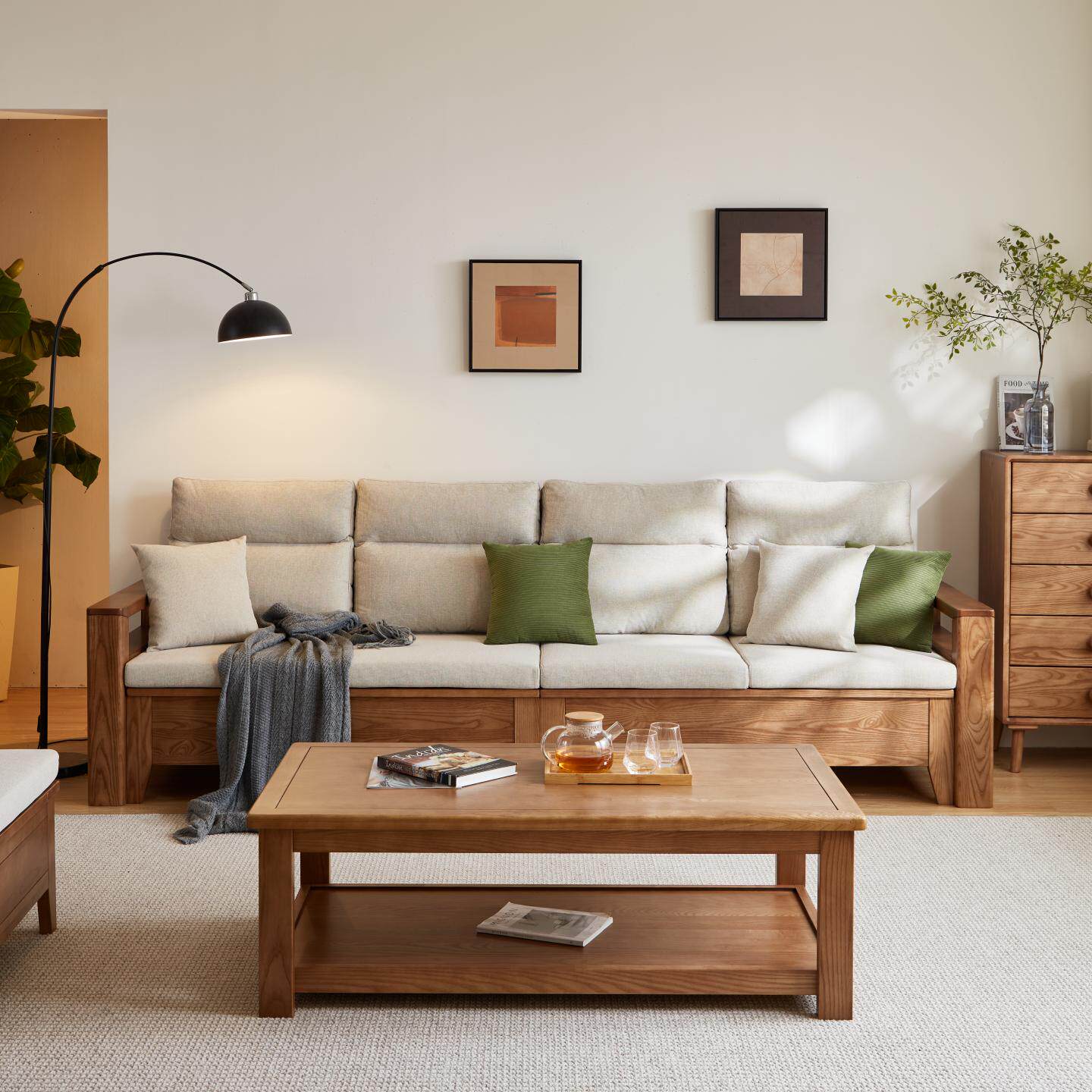 源氏木语实木沙发现代简约高靠背布艺沙发客厅小户型橡木直排沙发